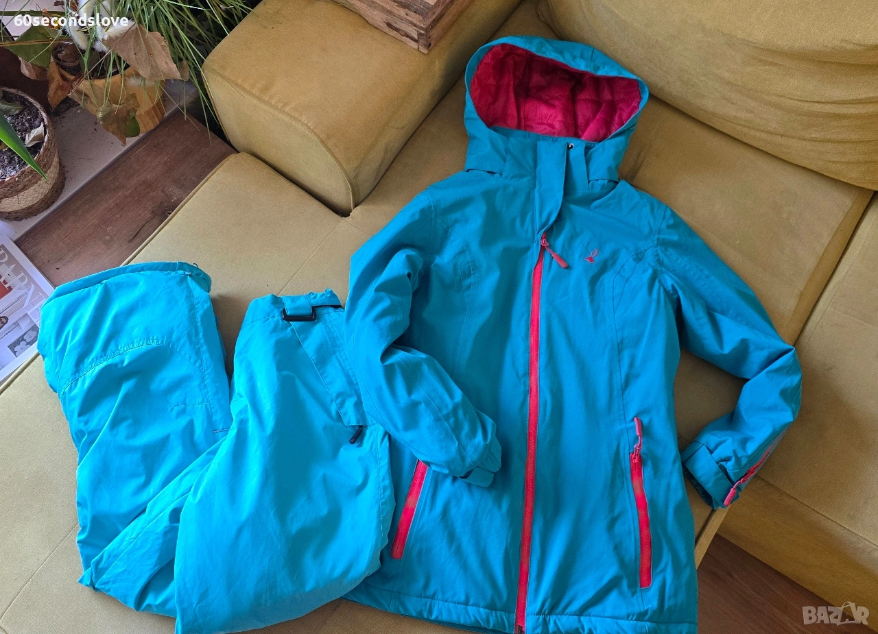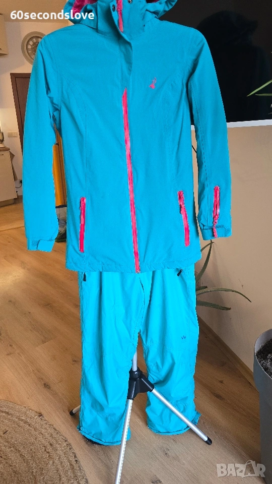 Ски екипът е купен нов за малко над 200 лв. Обличан е 1 сезон и е много запазен, с минимални следи от употреба. Подходящ за дама/момиче с ръст 170 см, размер S-М