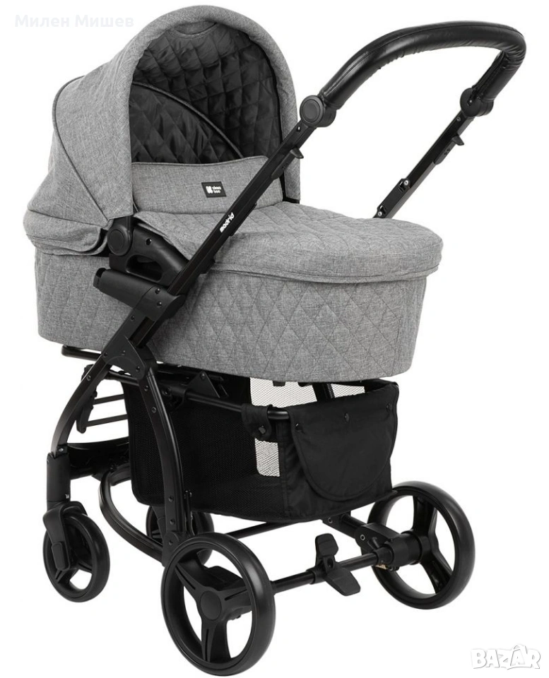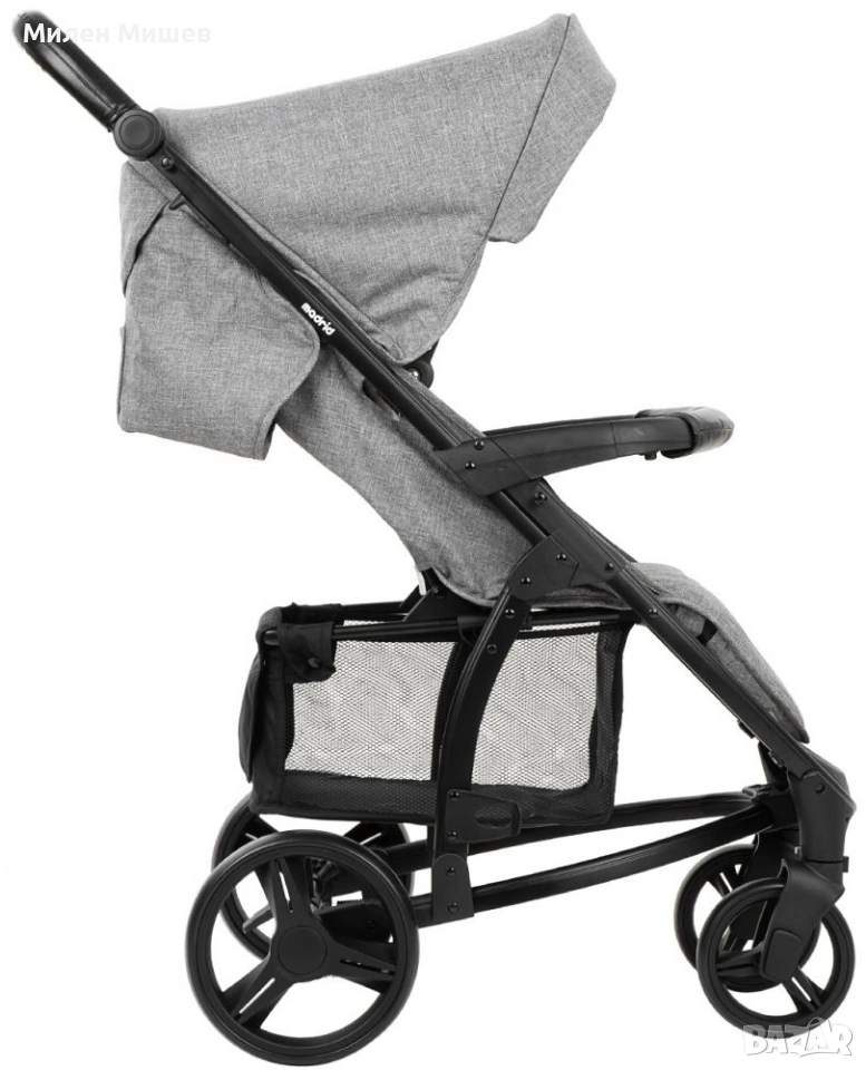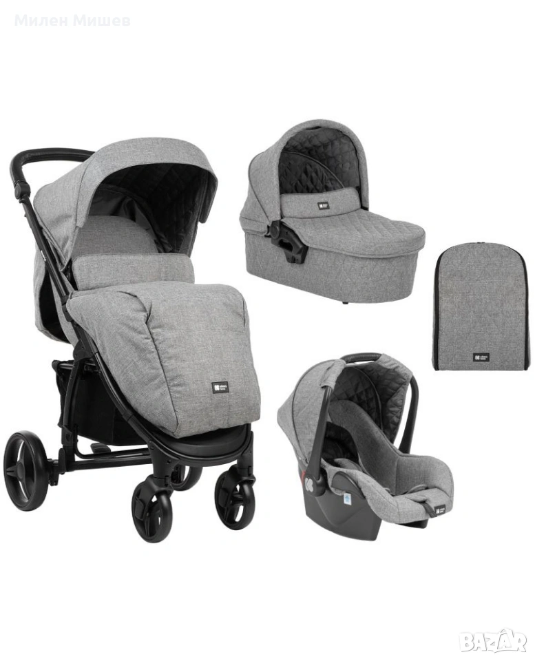 Бебешката количка Kikka Boo Madrid е със страхотен дизайн, подходяща за модерни градски родители. Комплектът включва кош за новородено, лятна седалка, столче за кола (0-13 kg) и допълнителни аксесоари. Моделът е стилен и маневрен, с лека алуминиева рамка с анодизирано покритие. За безопасността на детето се грижи 5-точковият предпазен колан. Характеристики: Луксозна и лека алуминиева рамка с анодизирано покритие; Система за бързо и лесно сгъване със или без седалката; Регулируема дръжка в 10 позиции; Голям отстраняем сенник; PVC прозорец за наблюдение на детето; Допълнителна козирка на сенника; Мека подложка на седалката; Регулируема позиция на гръбчето до пълно легнало положение; Регулиране с една ръка на облегалката; Джоб на гърба на седалката; Отстраняем предпазен борд; 5-точков предпазен колан с меки раменни подложки и покритие на долната катарама; Голям кош за съхранение на багаж; 360 градуса въртене на предните колела със заключващ механизъм; Задна спирачка с едно докосване; Отстраняеми предни и задни колела; Регулируема опора на крачетата в в 3 позиции. Характеристики на коша за новородено: Кош с мек матрак; Сгъваем и отстраняем сенник; Текстилна подложка на дръжката. Характеристики на столчето за кола: Регулируема ергономична дръжка; Отсраняем сенник; Мека подложка; 3-точков предпазен колан с меки раменни подложки и покритие на долната катарама; 0-13 kg (група 0+). Комплектът включва: Кош за новородено; Лятна седалка; Столче за кола (0-13 kg); Чанта за аксесоари, която може да се превърне в повивалник; Поставка за чаша; Покривало за крачета на седалката; Покривало за крачета на коша за новородено; Дъждобран; Адаптори за столчето за кола. Моделът е подходящ за деца още от раждането до достигане на тегло от 22 kg. Тегло на количка: 10.5 kg Размер разгъната: 107 x 58 x 70 cm Размер сгъната: 80 x 58 x 26 cm Тегло на кош за новородено: 6 kg Размер: 88 х 46 х 24 cm Тегло на столче за кола: 4 kg Размер: 68 x 39 x 54 cm