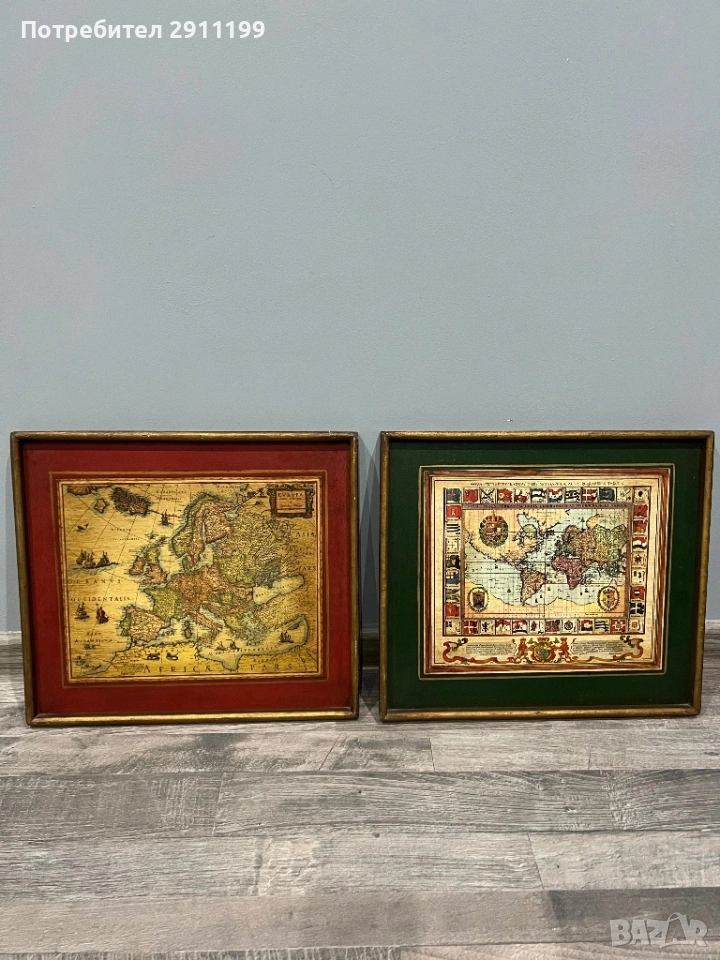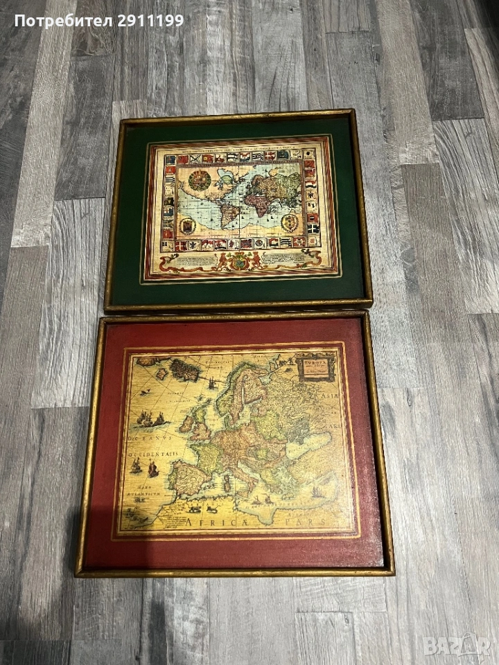 Картина с карта на света и на Европа, 2 бр.
