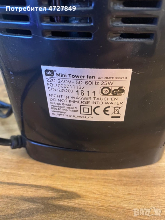 Продавам стоящ вентилатор в елегантен черен цвят. Уредът е стабилен, мощен и работи отлично. Перфектен за разхлаждане у дома или в офиса.