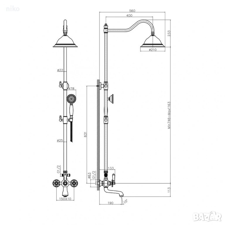 душ система със смесител Inter Ceramic 6113 на модули → Обява 53395794