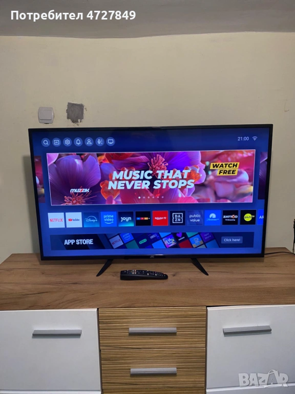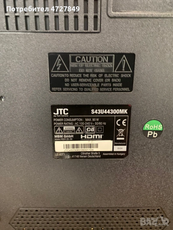 Продавам 43-инчов Smart TV на марката JTC. Телевизорът е в отлично визуално и техническо състояние, работи безупречно. Идеален за гледане на филми, стрийминг и игри.