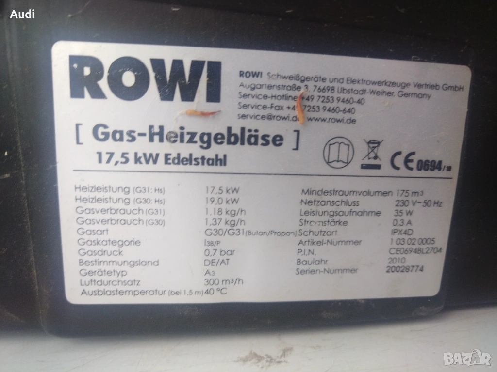 Газов калорифер за отопление ROWI мощност 19kW