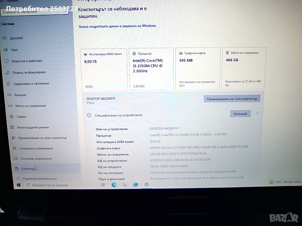 - Операционна система: Windows 10 Home 64-bit/BG/.