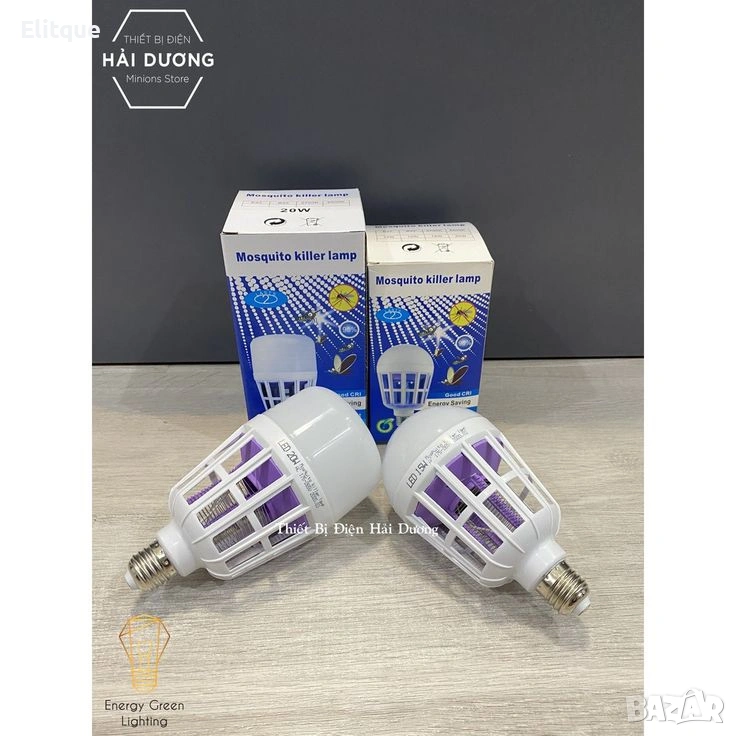 LED крушка против комари с адаптор за стена Ефективно и практично решение срещу комари и летящи насекоми, съчетаващо LED осветление и функция против комари в едно устройство. Подходяща за дома, тераси, вили, гаражи и други закрити помещения. Крушката разполага с два режима на работа – само лампа против комари или комбинирано LED осветление с функция против комари. Осигурява силна светлина и ефективно покритие в радиус до 20 метра. Характеристики: Волтаж: 220V Мощност: 15W Цветна температура: 6500K Светлинен поток: 1000 лумена Радиус на обхват: до 20 метра Фасунга: тип E27 Режими на работа: лампа против комари LED осветление + лампа против комари Предимства: Два режима на работа Комбинира осветление и защита от насекоми Лесен монтаж Подходяща за различни помещения Доставка с Еконт с опция преглед и тест до 3 работни дни.
