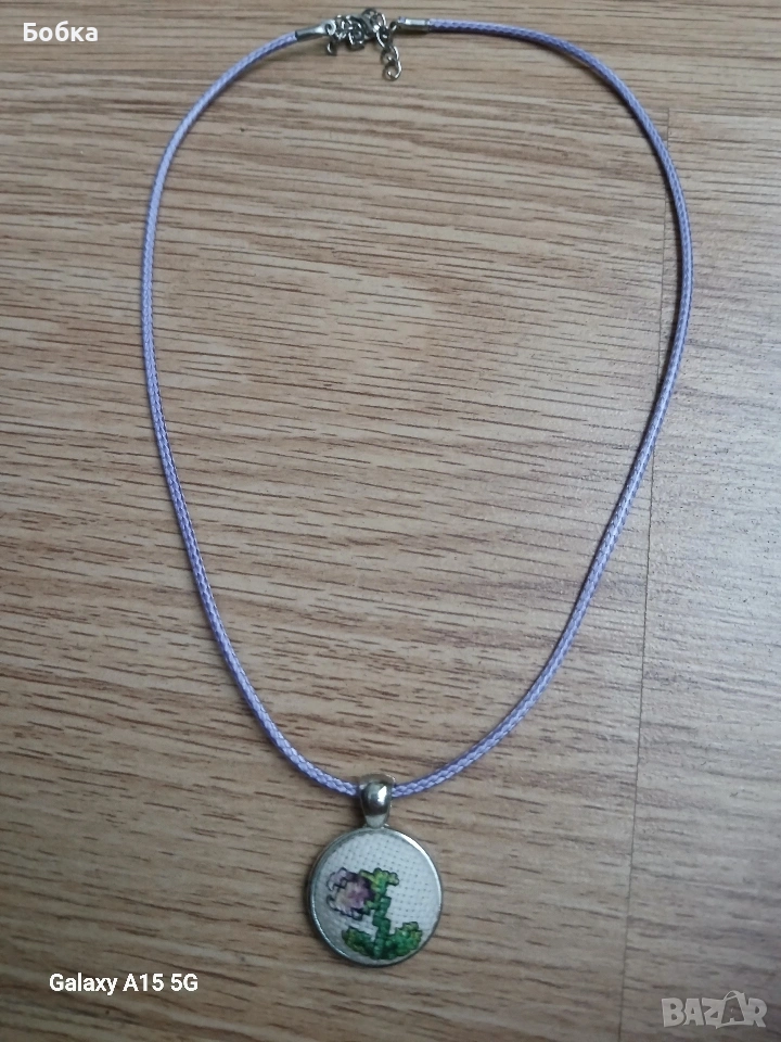 Ръчно изработено колие с бродирано цвете. Елегантно и нежно, подходящо за различни поводи.