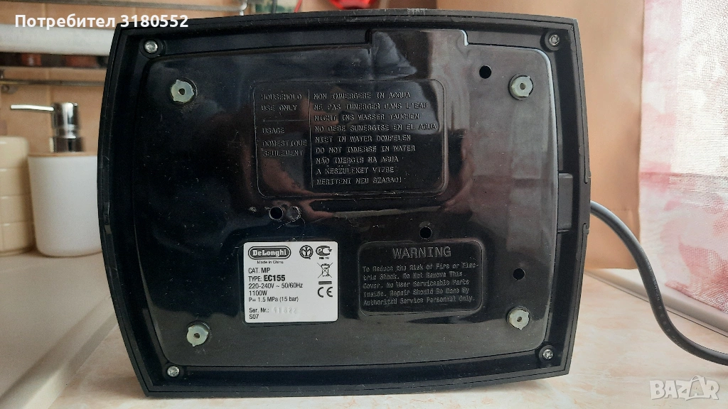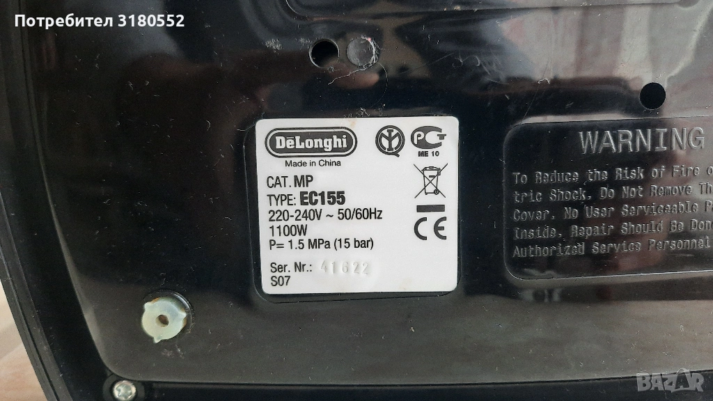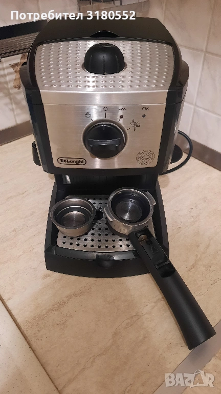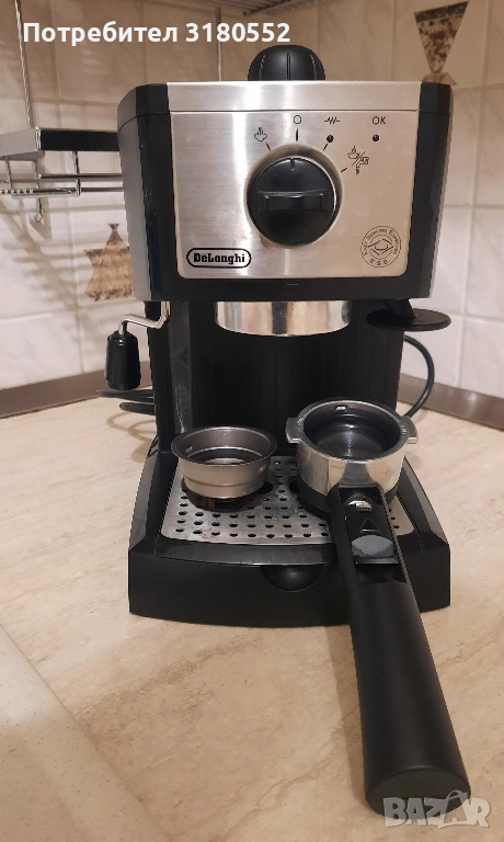 Продавам еспресо кафе машина DeLonghi EC155CD в комплект с 2 бр. цедки с крема диск. С функция капучино. Подвижен резервоар за чиста вода с вместимост 1 литър. Най-добрия модел с хромираните елементи. Подвижна решетка за лесно почистване. Малко ползвана и с перфектна визия – видно и отснимките. За инфо – по телефона.