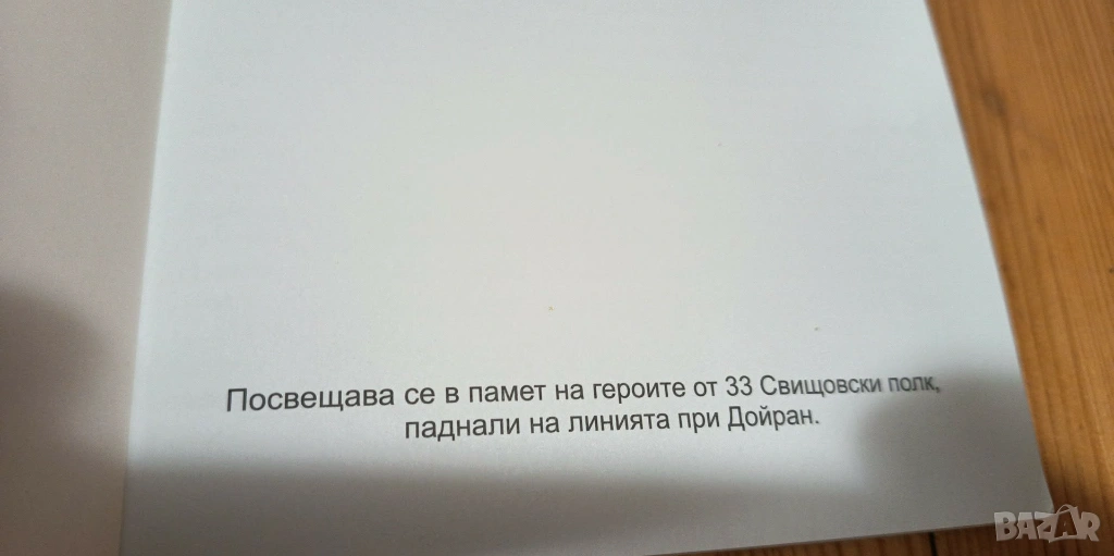 Романът разказва за героите от 33-и пехотен Свищовски полк, паднали на линията при Дойран.