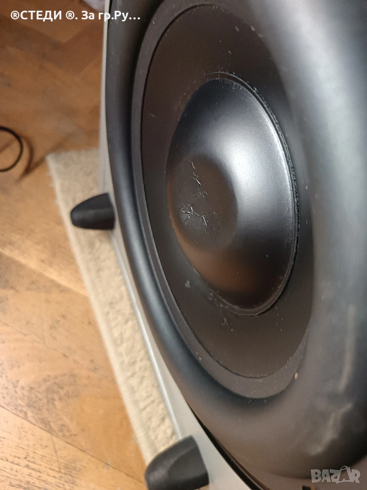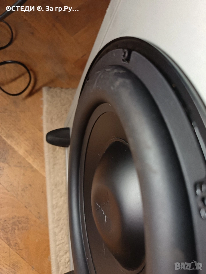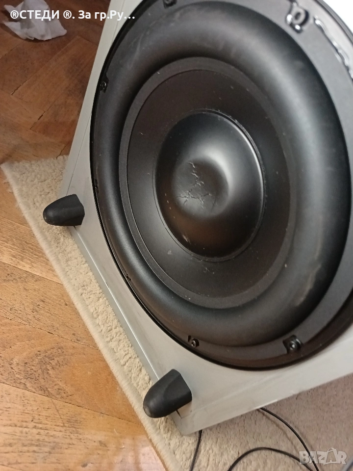 Субуфера е работещ, на всички входове и изходи, външния вид се вижда на снимките. Шпулата малко му е натисната, но не му пречи на звука.