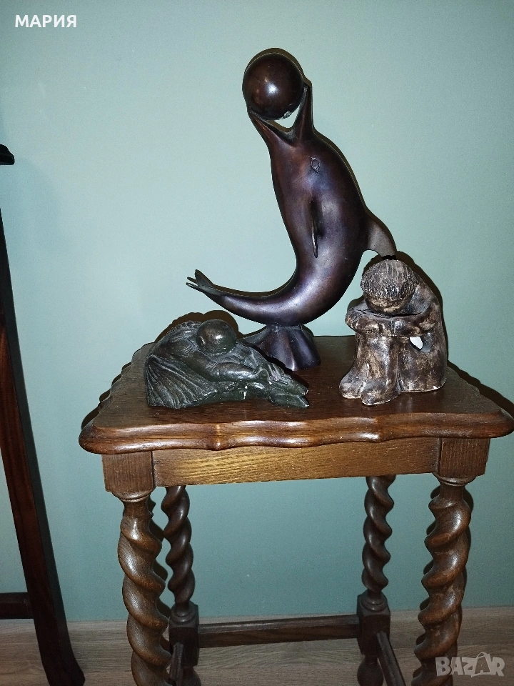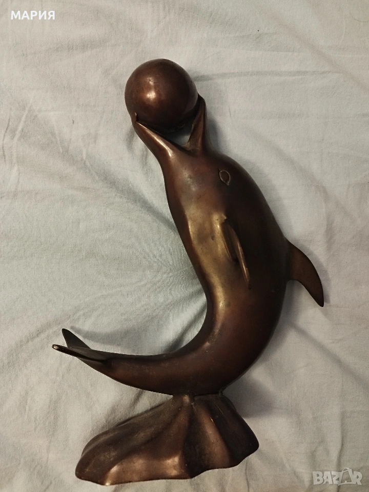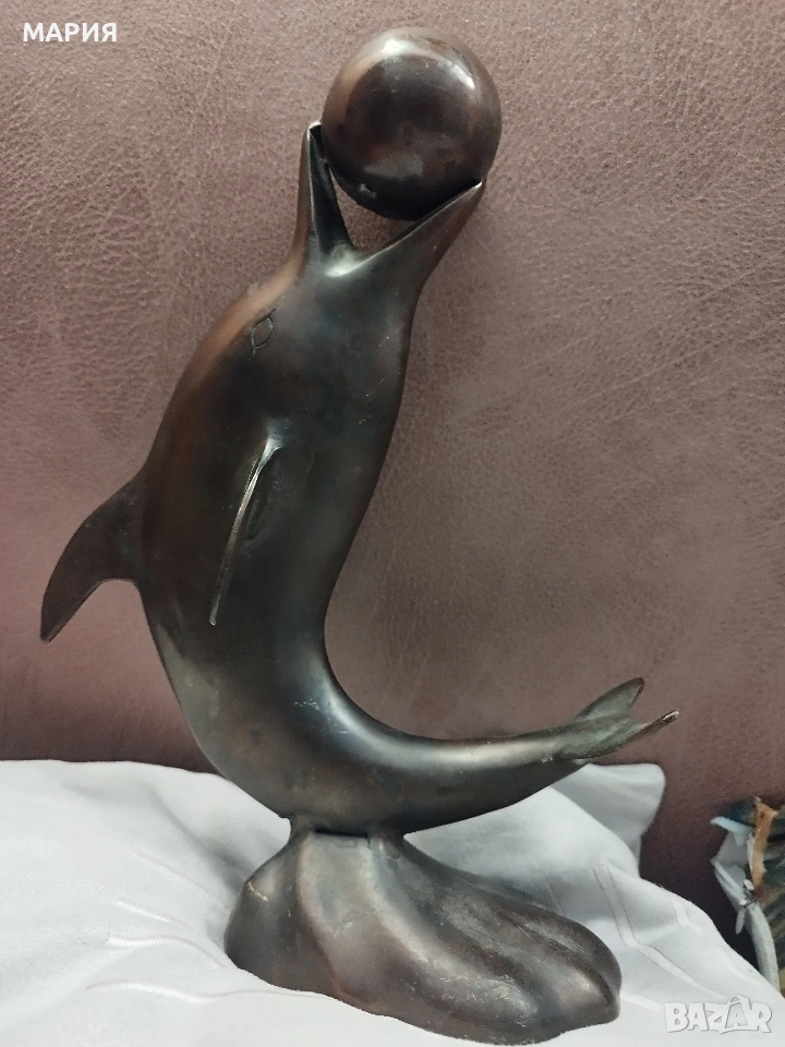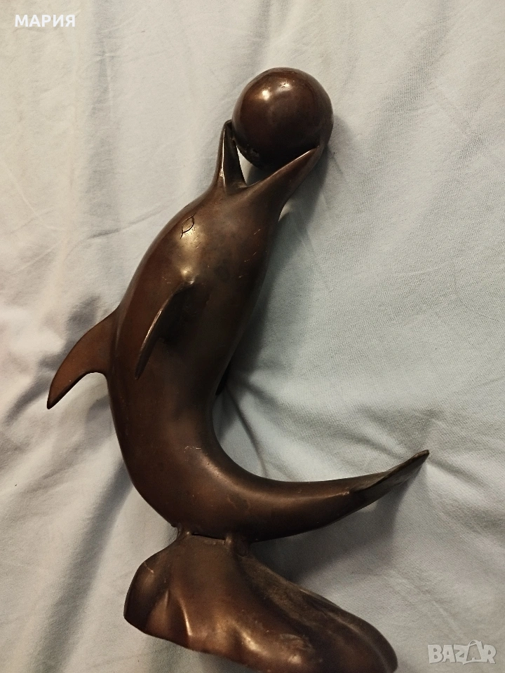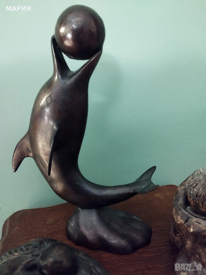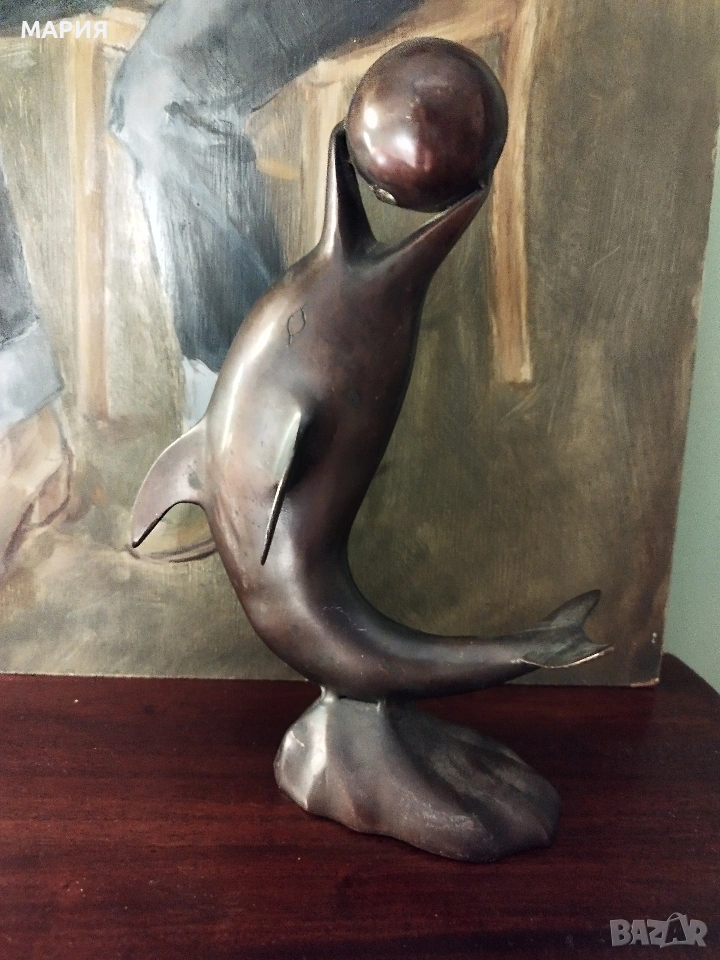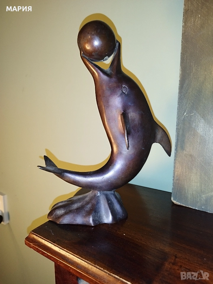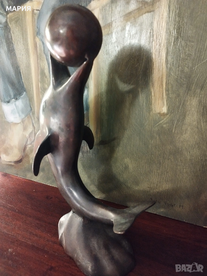 Бронзова скулптура 28см - делфин с топка → Обява 53396493