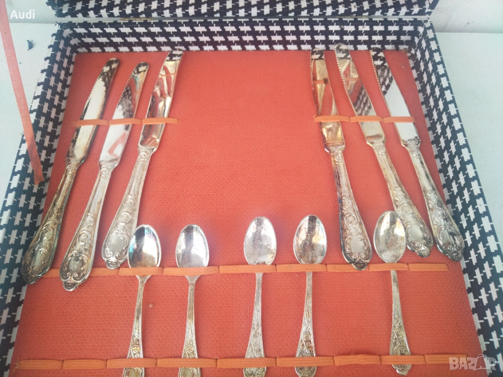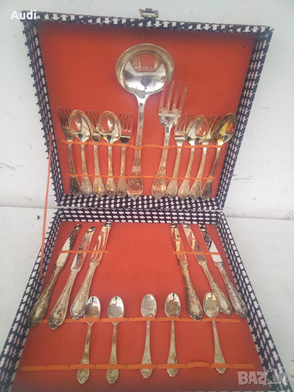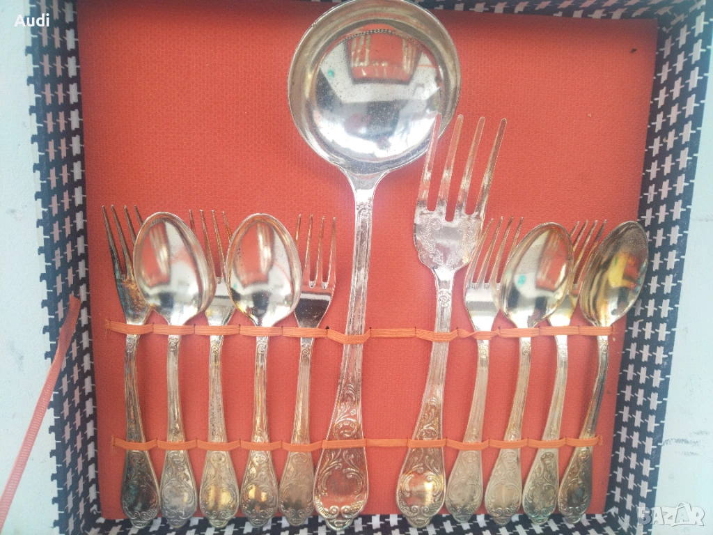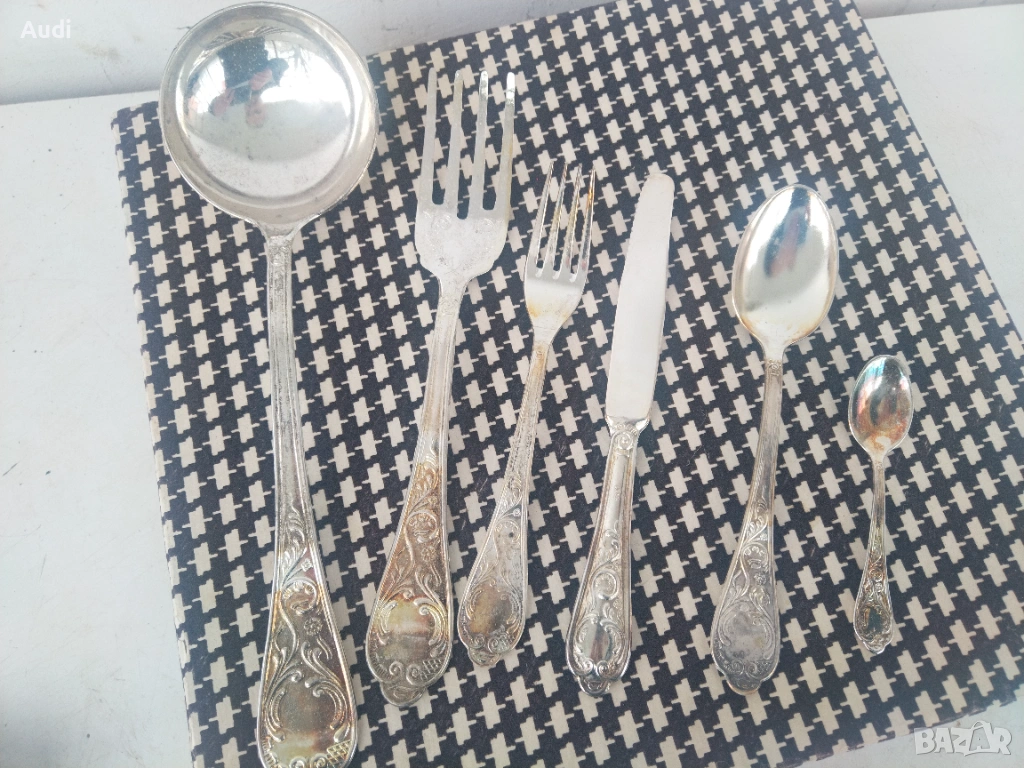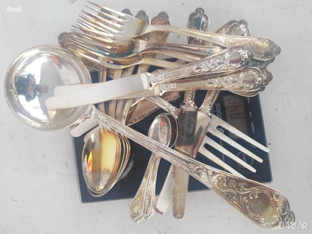 Сервиз посребрени прибори тегло 849 грама вилици, Лъжици ножове хранане маркирани сребро проба 800 I