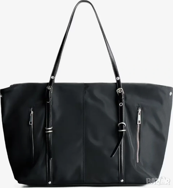 Дамска чанта от изкуствена кожа Bershka, 32х53х16 см, Черна, снимка 1 - Чанти - 53397155 Дамска чанта от изкуствена кожа Bershka, 32х53х16 см, Черна, снимка 2 - Чанти - 53397155 1/2