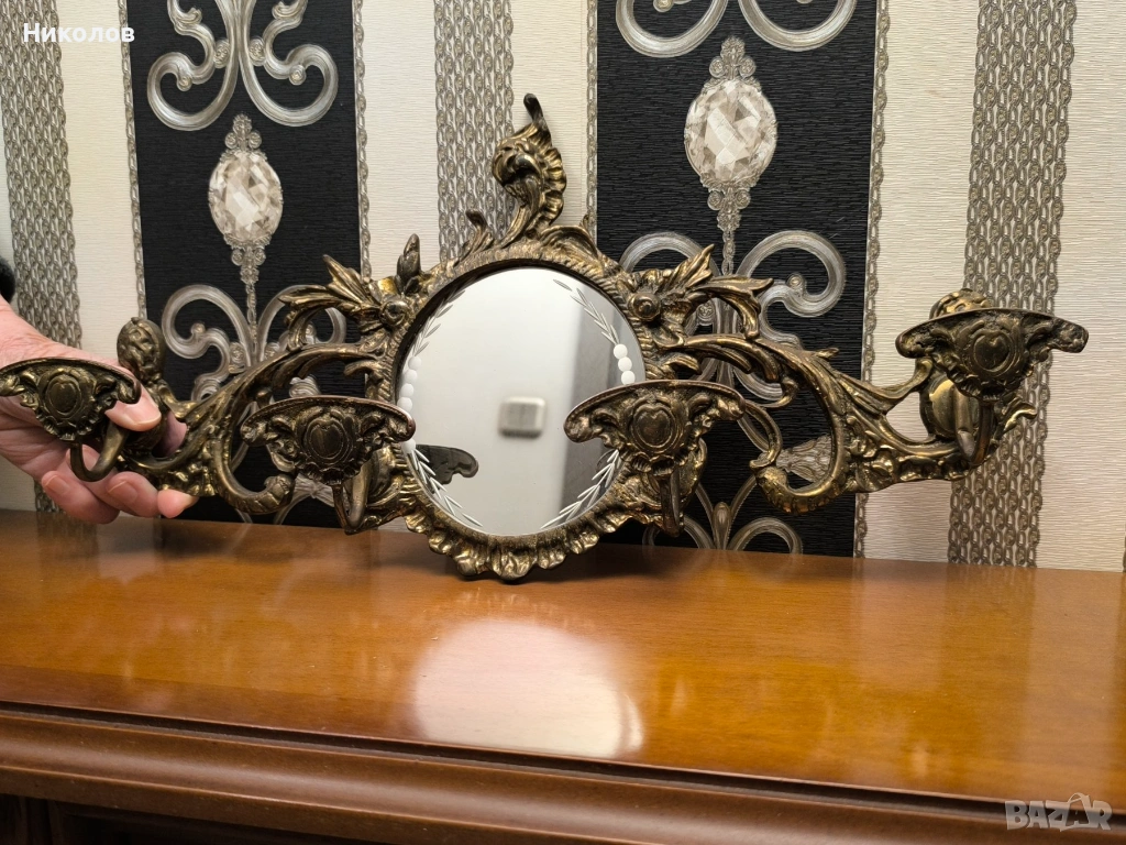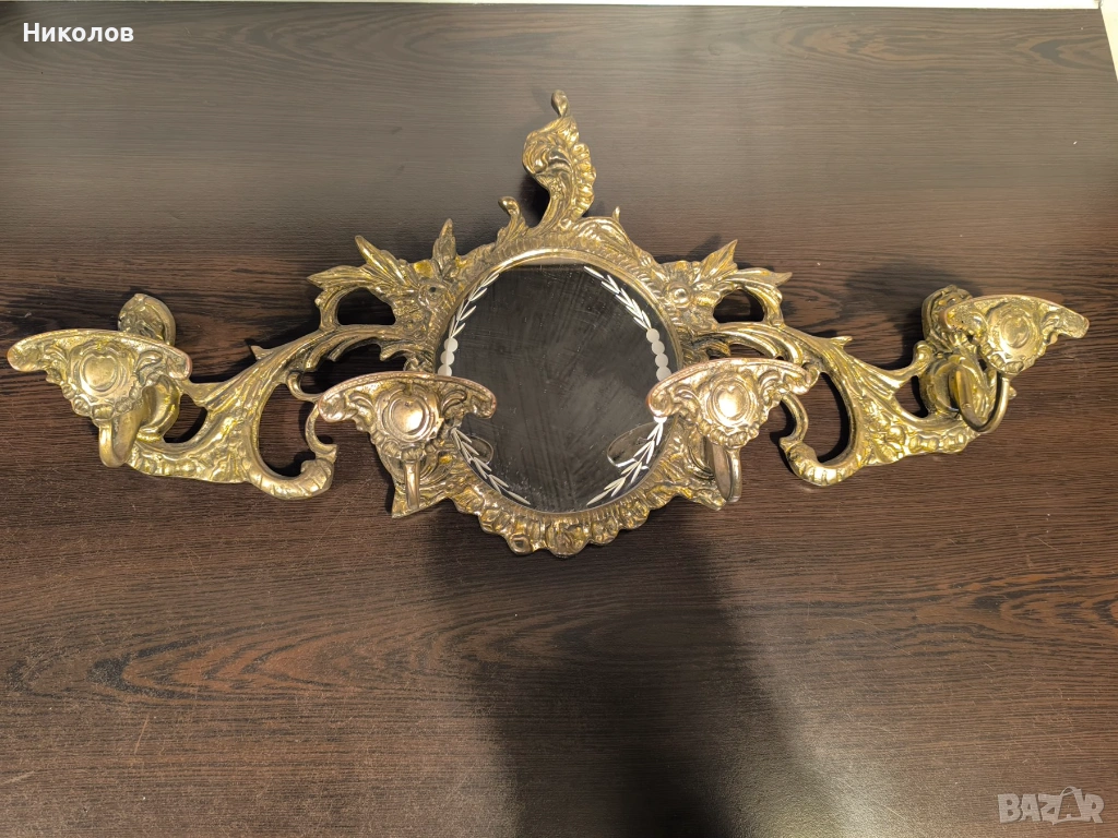 Месингова закачалка с огледало. Много добро състояние. Размери 50/25 см.