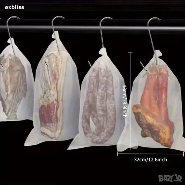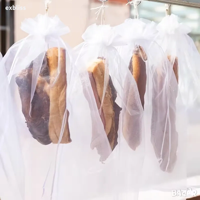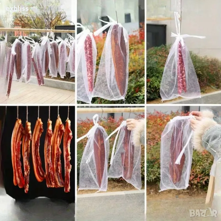 Икономичен пакет (10 броя): Получавате цели 10 торби наведнъж, което ви позволява да организирате сушенето на голямо количество месо, риба или колбаси, без да търсите импровизирани решения.
