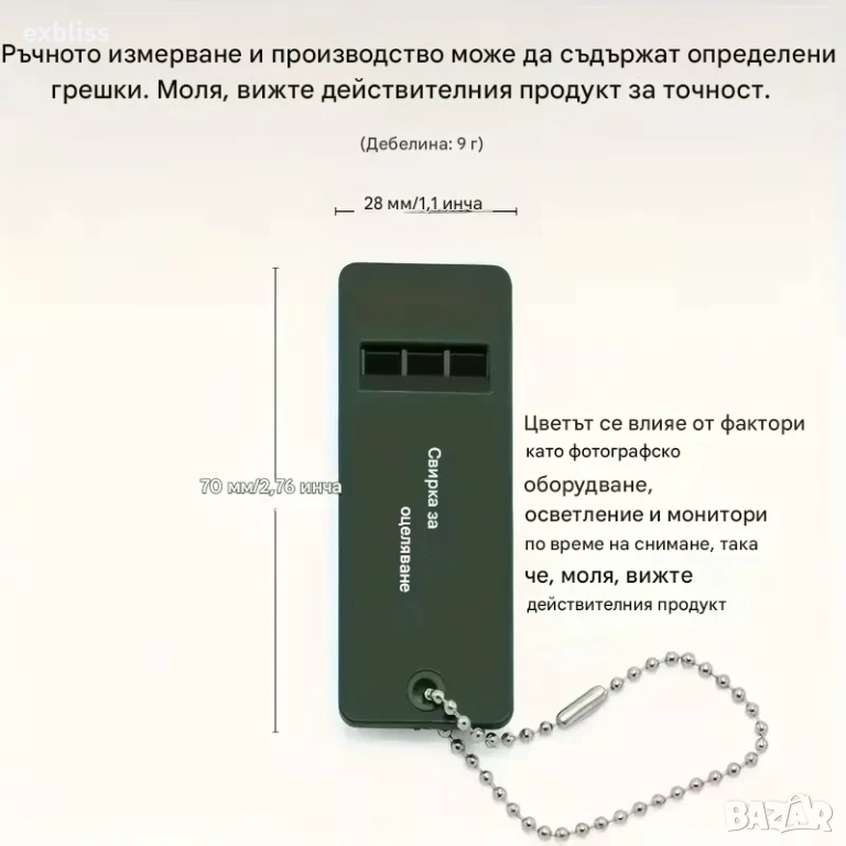 Винаги под ръка: Компактни размери (70 × 27 мм) и включена верижка за лесно прикрепяне към раница, колан или ключодържател.