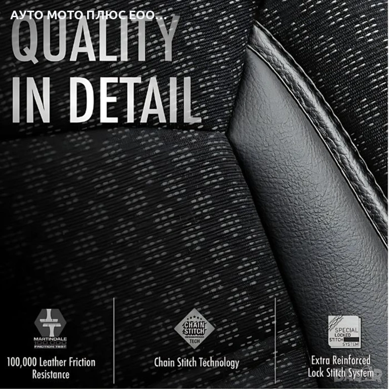 Материал: Калъфите са изработени от комбинация на висококачествен памучен плат и екологична кожа. Материалите са дишащи и не съдържат канцерогенни вещества.