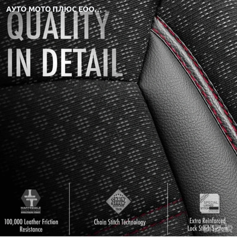 Материал: Калъфите са изработени от комбинация на висококачествен памучен плат и екологична кожа. Материалите са дишащи и не съдържат канцерогенни вещества.