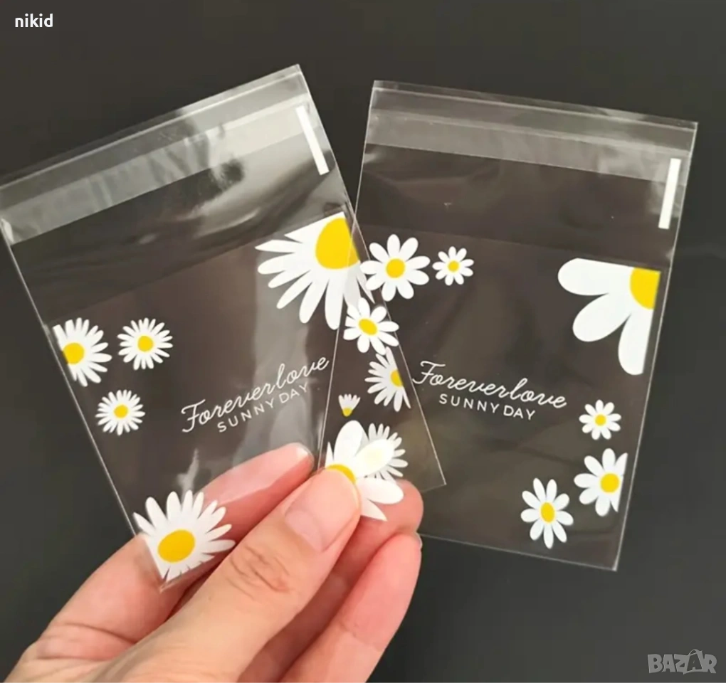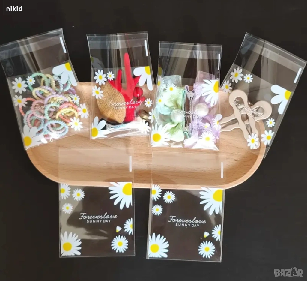 50 бр маргаритки цветя прозрачни опаковъчни пликчета торбички за дребни сладки ръчна изработка → Обява 53397539