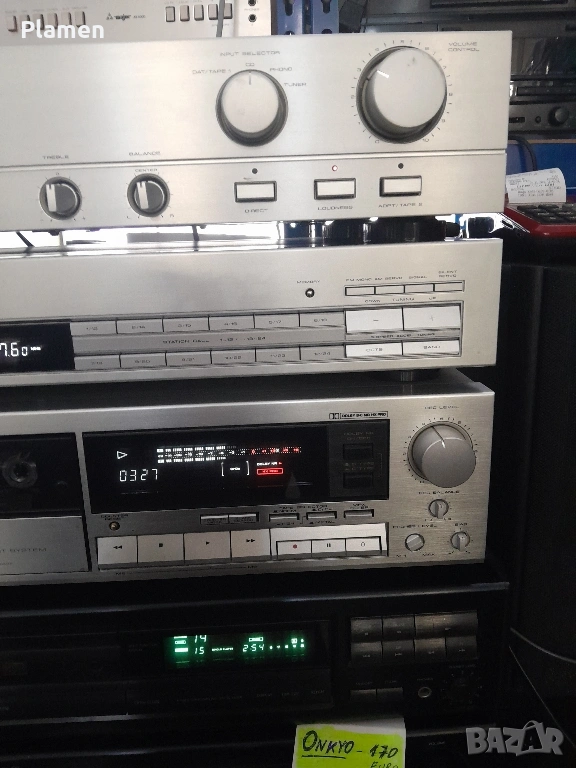 усилвател"А 225" 80 евро 2х35 вт /8 ома.изх.4 колони 10 Hz÷50 KHz.THD 0.07% Вход- tape 1.2.DAT.CD. Tuner.Phono тунер "ТХ 445" 50 евро цифров FM.AM с 24 фикс.ст.стерео.тунинг дек"CT 445" 90 evro 2 глави.2 мотора Долби. В.С.НХ про.BIAS 2 цв.флуор.инд. ел.брояч. Перфектен вид и работа. Цена по куриер + 20 евро От място 190 евро 0893 654 254 Петров