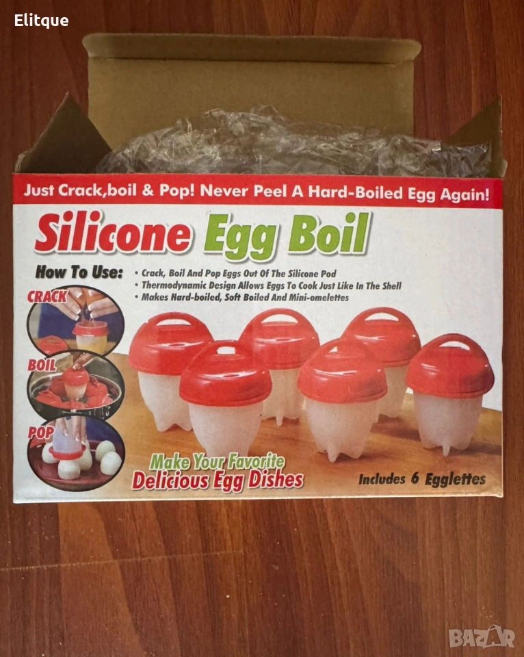 Силиконови формички за варене на яйца без черупка – комплект 6 броя Практични и удобни силиконови формички, които позволяват варене на яйца без черупка. Идеални за приготвяне на перфектно оформени яйца за закуска, салати или гарнитури, без излишно белене и загуба на време. Изработени от висококачествен силикон, устойчив на високи температури, формичките са лесни за употреба и почистване. Подходящи са както за варене, така и за използване в микровълнова фурна. Предимства: Варене на яйца без черупка Комплект от 6 броя Изработени от термоустойчив силикон Лесни за използване и почистване Идеални за закуска и салати Доставка с Еконт с опция преглед до 3 работни дни.