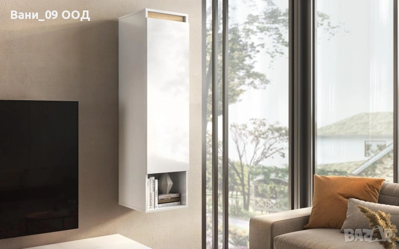 Практичен и елегантен стенен шкаф с открита и закрита част. Подходящ за съхранение на различни предмети и декорация на Вашия дом.