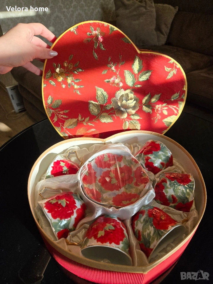 6 броя чинии + 6 броя чаши + 1 бр. красива подаръчна кутия.