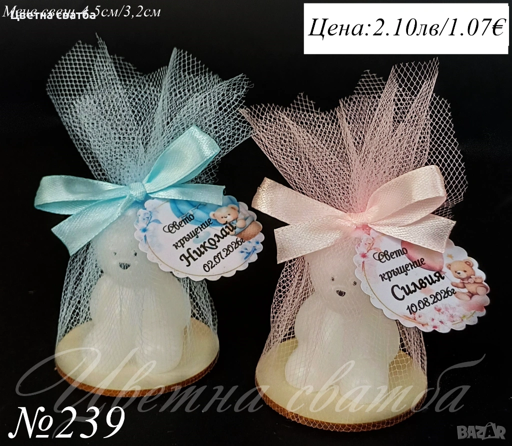 Подаръчета за кръщене, Подаръци за кръщене, Подаръци за гости за кръщене, Свещи → Обява 53398392