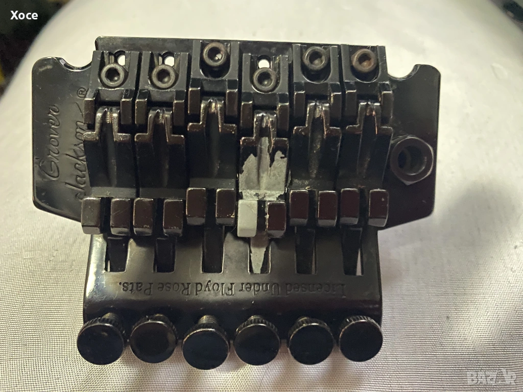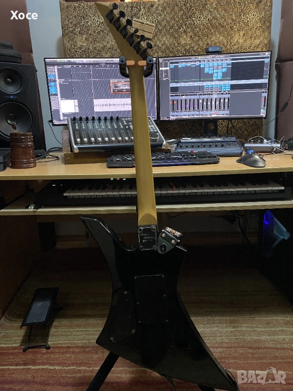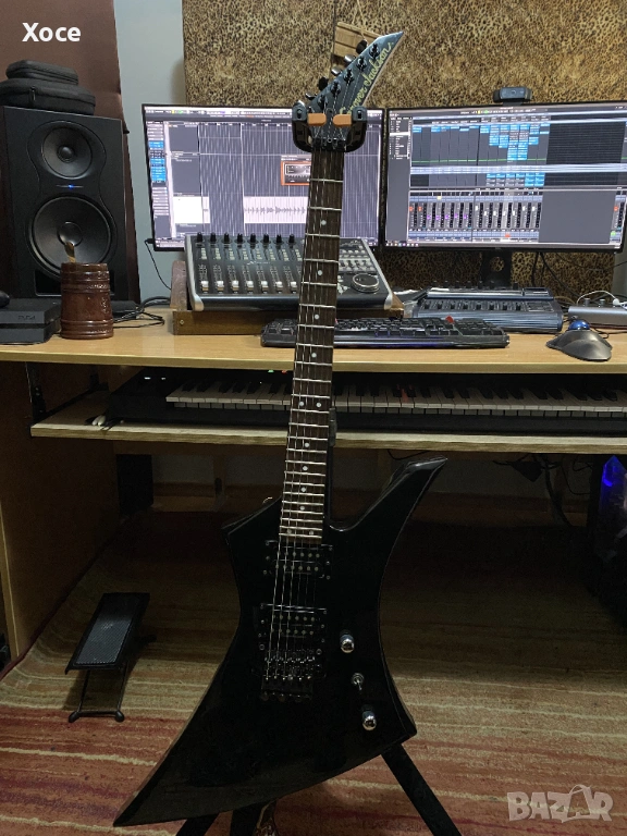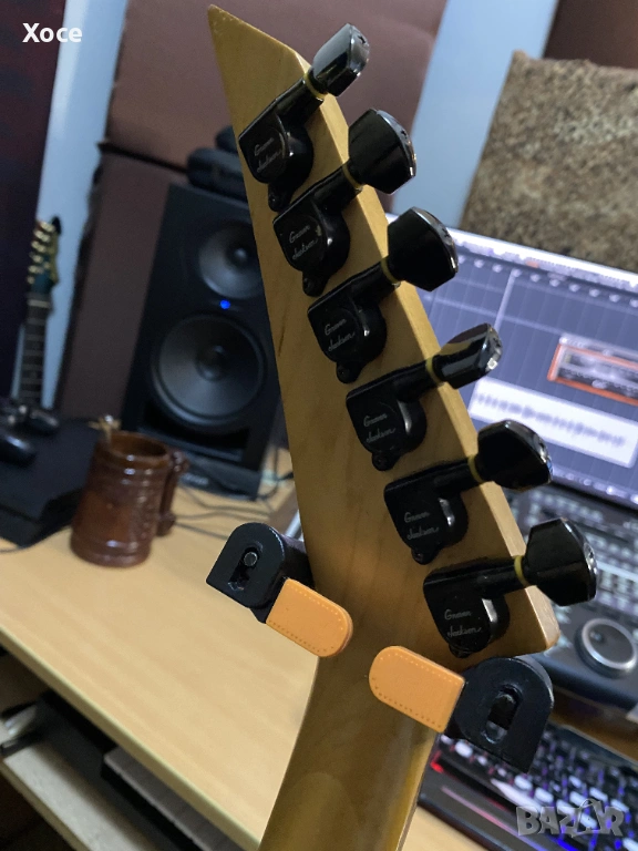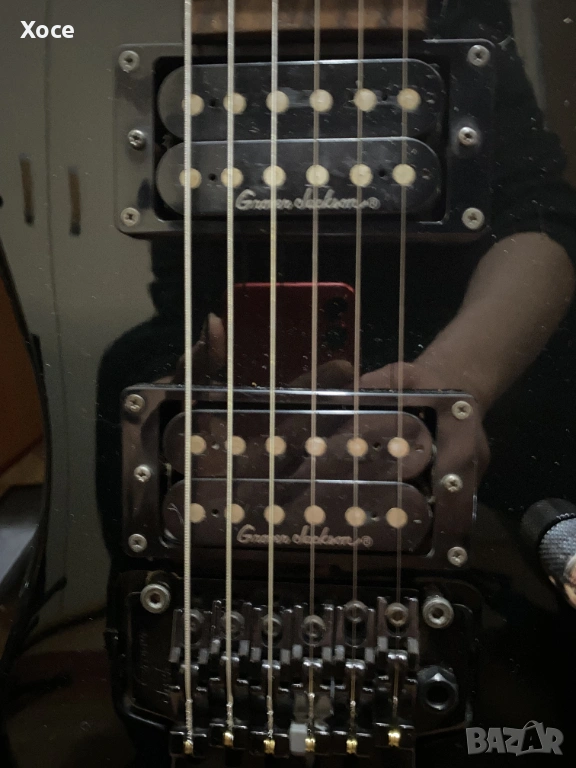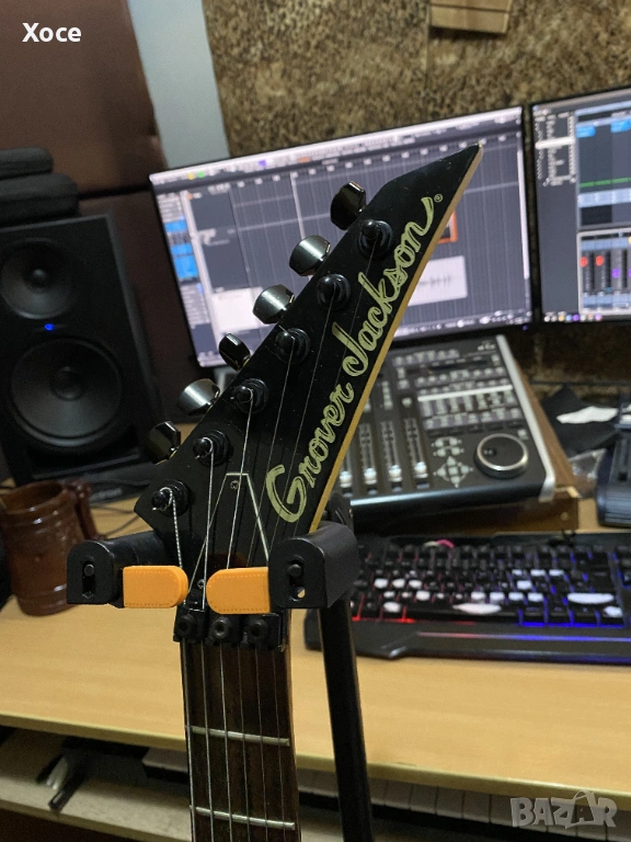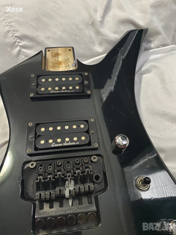 Този конкретен модел е Grover Jackson, произведен в Япония през 1995 г. Смятам, че е KE.A-52. Цялата електроника работи безупречно, а тръс прътът все още има резерв за регулиране. Липсва тремоло лостът.
