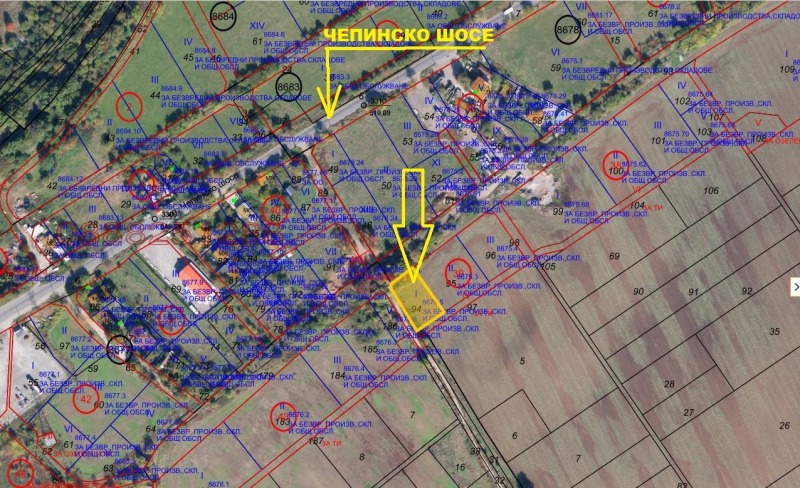 Продава УПИ на 150 м от Чепинско шосе. Парцелът попада в регулация, зона СМФ2 (Смесена многофункционална зона) с коефициент на интензивност 1.2, плътност на застрояване 40 %. Парцелът е с отлична бизнес перспектива. Отреждането по общия устройствен план прави подходящ парцела за обществено обслужване, търговия, безвредни производства, жилища, спорт и атракции и други допълващи функции.