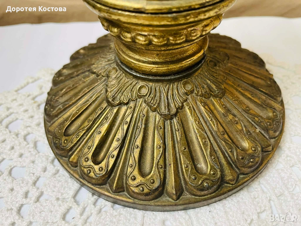 Красива голяма месингова лампа от Англия, масивна и здрава, тежка, не е почистена, размерите са на снимките. Прекрасна и качествена, богато орнаментирана и рядко срещана. Цена - 61 евро / 119.31 лв.