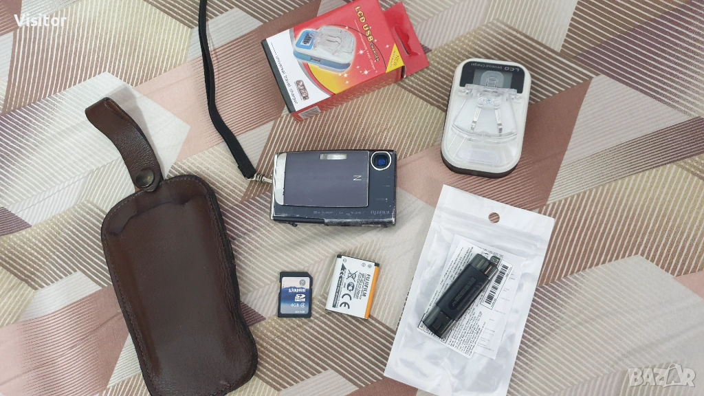 Fujinon Zoom Lens е автофокусният обектив с оптично увеличение и асферична леща улавя най-малкия детайл.Фотоапарата има слот за SD карта.Светкавицата работи отлично и осигурява направата на качествени снимки и в стайни помещения. Към фотоапарата предлагам - литиево-йонна батерия за модела, SD карта с възможност за записване на 2179 снимки, нов картов четец за прехвърляне на данни към компютър или телефон,универсално зарядно/зарежда батерията независимо как е поляритета - няма зачение + - и как е поставена на зарядното.Има и LCD дисплей,който показва началото и края на заряда.И самото зарядно работи на 220волта и чрез USB - може да зарежда телефони и други устройства,които се зареждат на на 5 волта.Към фотоапарата има и удобен калъф за пренасяне и връвка за по лесно носене и правене на снимки. Прилагам снимки правени на дневна светлина и в стая на светкавица! При интерес от Ваша страна мога да изпратя чрез офис на ЕКОНТ с - преглед и тест!