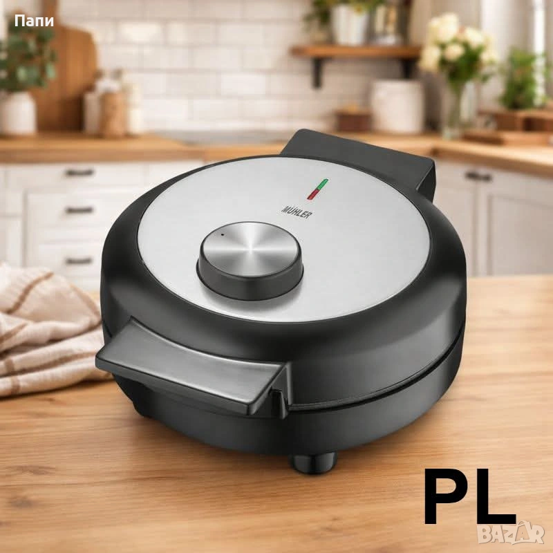 Уред за гофрети Muhler MHT-1010W, плочи-детелина Описание: Превърнете всяка закуска или следобедна пауза в истинско удоволствие с този модерен уред за гофрети. Създаден за удобство, безопасност и перфектни резултати, той комбинира стилен дизайн с висока ефективност. Уредът разполага с терморегулатор, който ви дава пълен контрол върху степента на изпичане – от меки и пухкави до златисто хрупкави гофрети. Незалепващите плочи тип „гофрета – детелина“ с диаметър 19 см осигуряват равномерно изпичане и лесно изваждане на готовите гофрети, без залепване и без излишно почистване. Декоративният панел от неръждаема стомана придава елегантен и модерен вид, подходящ за всяка кухня. Топлоизолираната дръжка гарантира безопасна употреба, а светлинният индикатор ясно показва кога уредът е готов за работа. Компактният дизайн позволява поставяне в изправено положение, което го прави идеален за малки пространства и удобно съхранение. Основни характеристики: Мощност: 1000W Захранване: 220–240V / 50–60Hz Диаметър на плочите: 19 см Незалепващо покритие за лесно почистване Терморегулатор за настройка на температурата Светлинен индикатор за работа Топлоизолирана дръжка Компактно вертикално съхранение Перфектните гофрети започват у дома! С този уред ще приготвяте ароматни, златисти гофрети за минути – бързо, лесно и без компромис с вкуса. Стилен дизайн, интелигентен контрол на температурата и лесна поддръжка – всичко, от което се нуждаете, в един компактен уред. Идеален за закуска, десерт или сладко изкушение по всяко време! Състояние:Ново 2 години гаранция Доставка до 3-4 дни с преглед и тест Цена:40 €