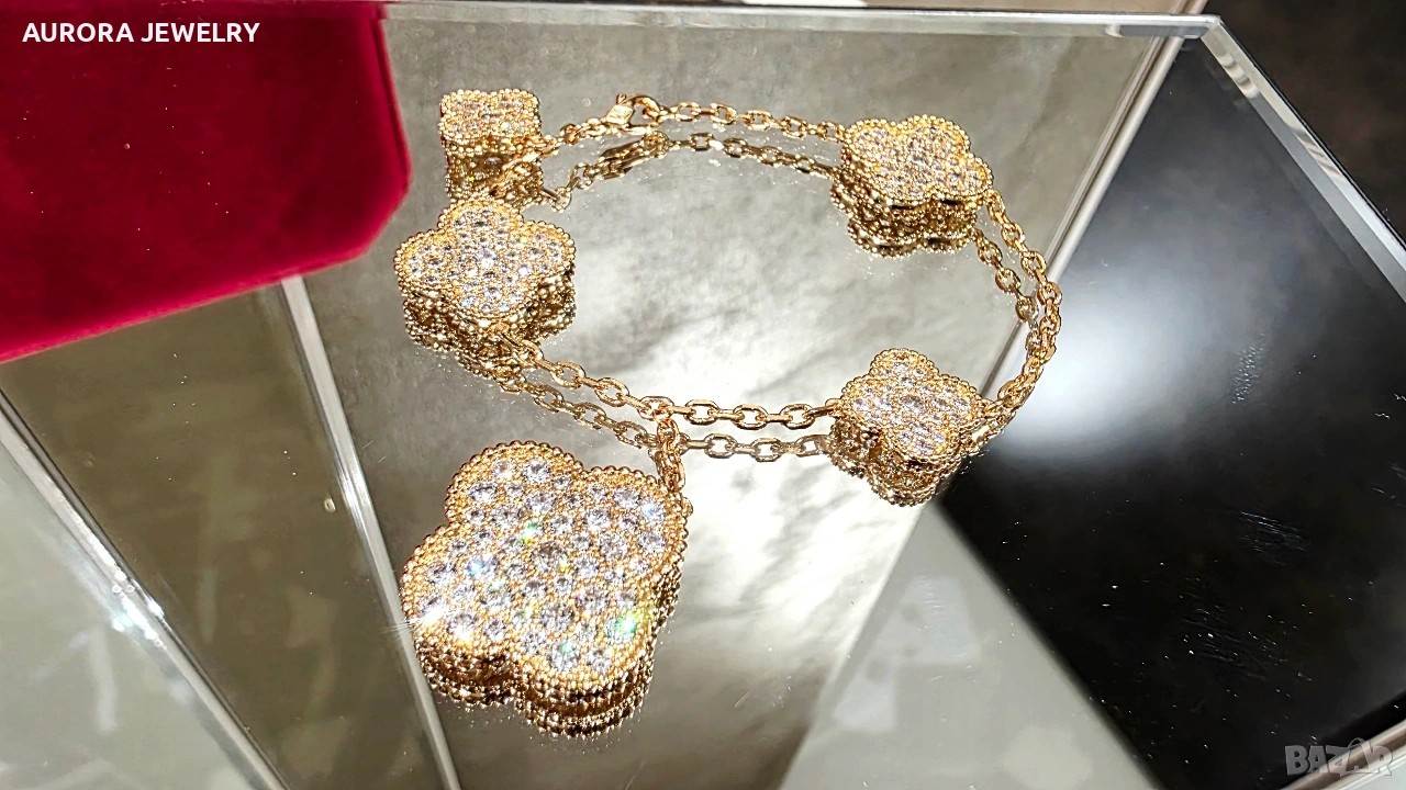Van Cleef & Arpels VCA Rose Gold 5 Motifs Diamond Magic Alhambra Clover Дамска Гривна