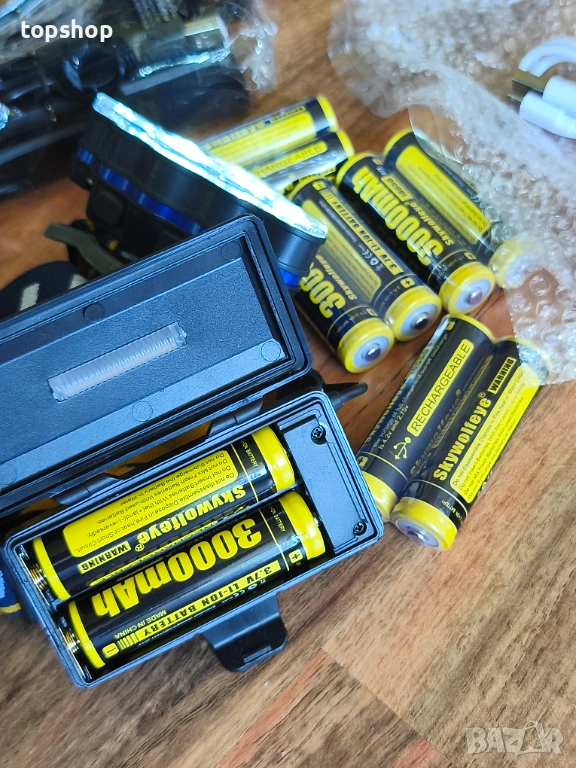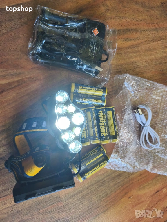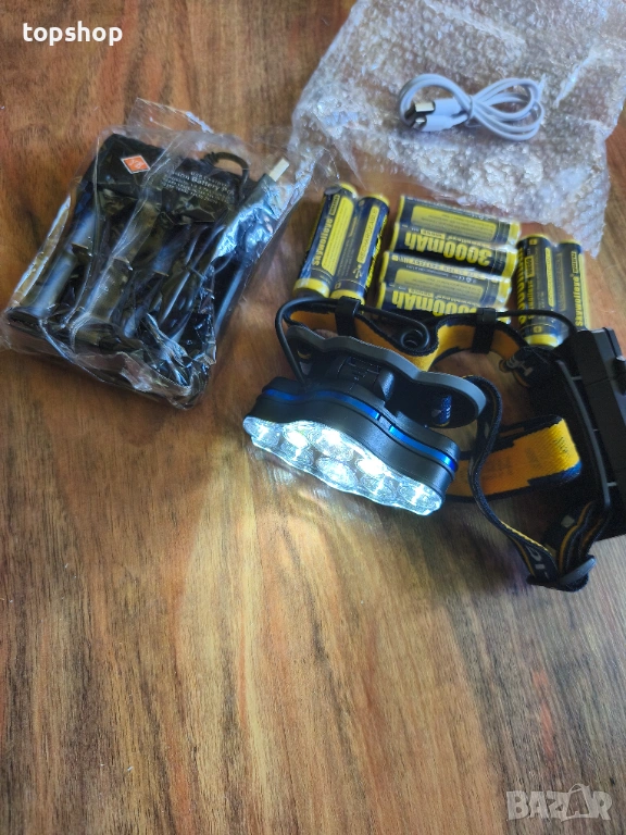 Челник с 8 батерии и зарядно, Професионален комплект челник 18000 лумена с 8 батерии 3000mAh и външно USB зарядно