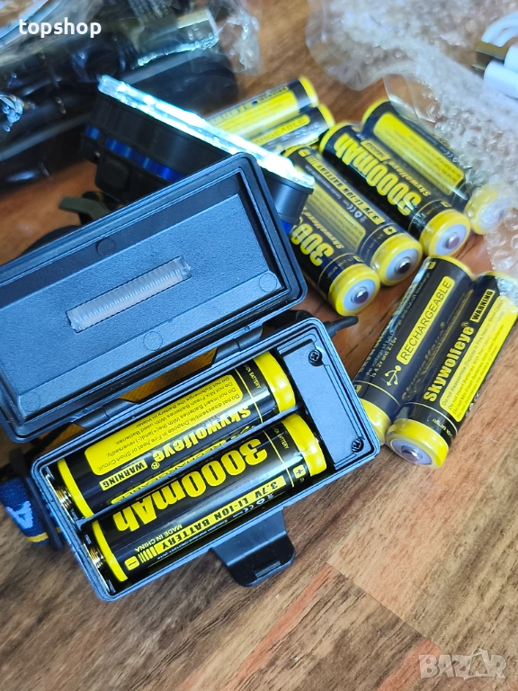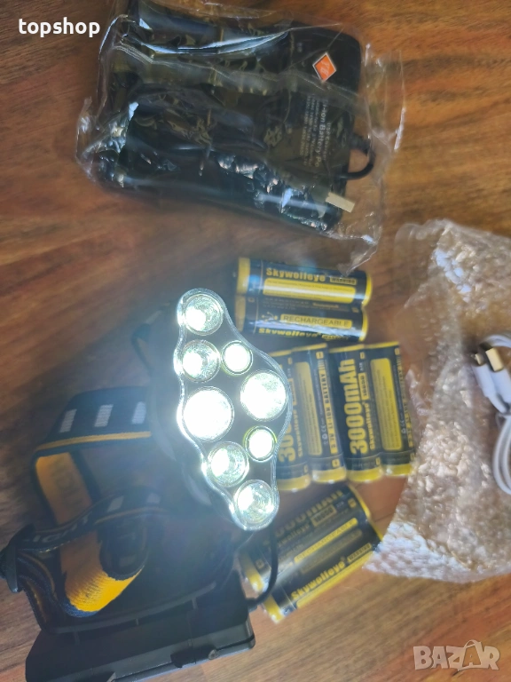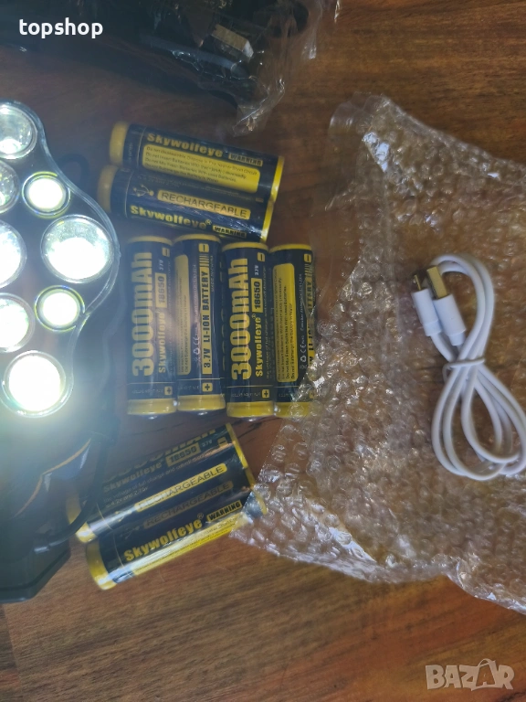 Челник с 8 батерии и зарядно, Професионален комплект челник 18000 лумена с 8 батерии 3000mAh...