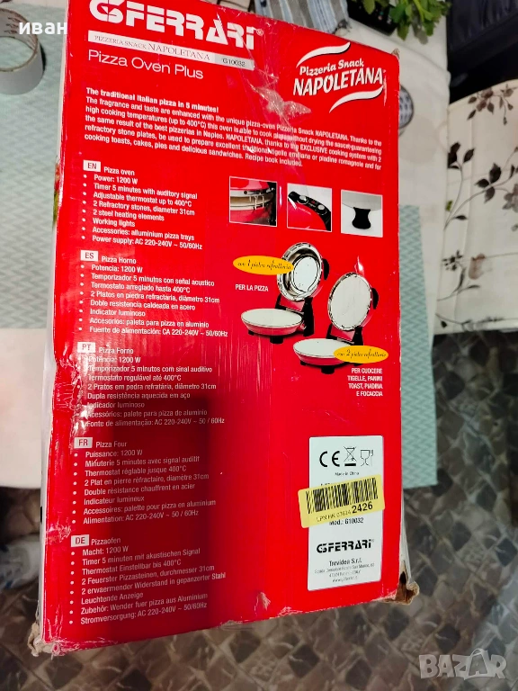 Аксесоари: алуминиеви тави за пица Ø 28 см Захранване: AC 230V ~ 50Hz Мощност: