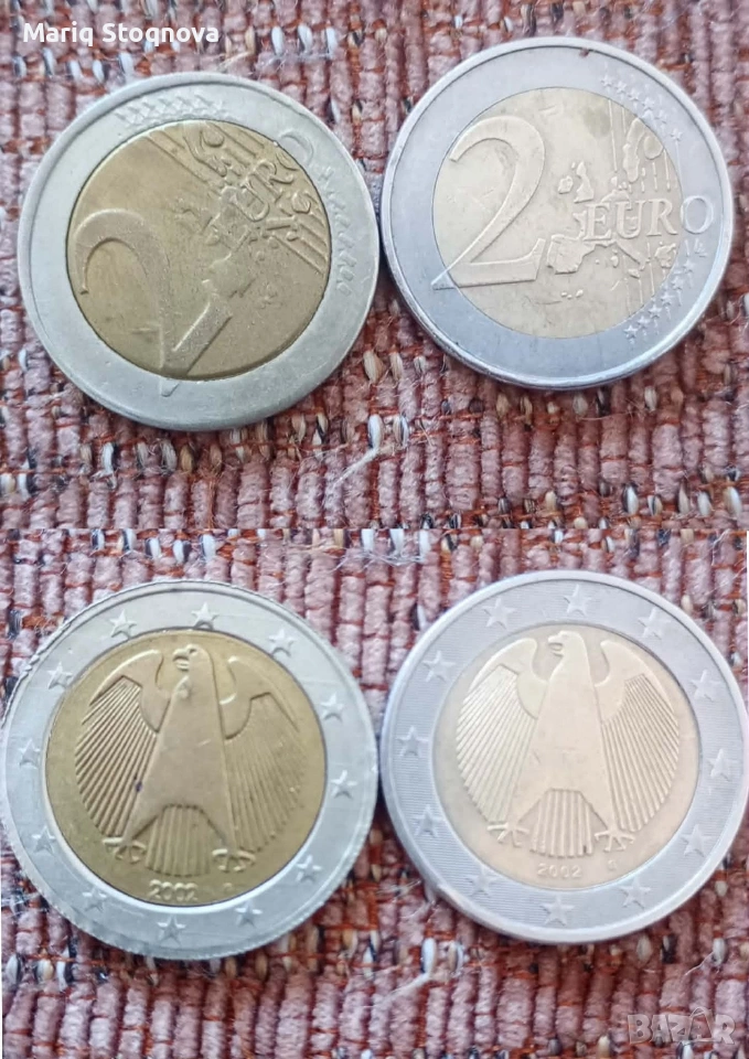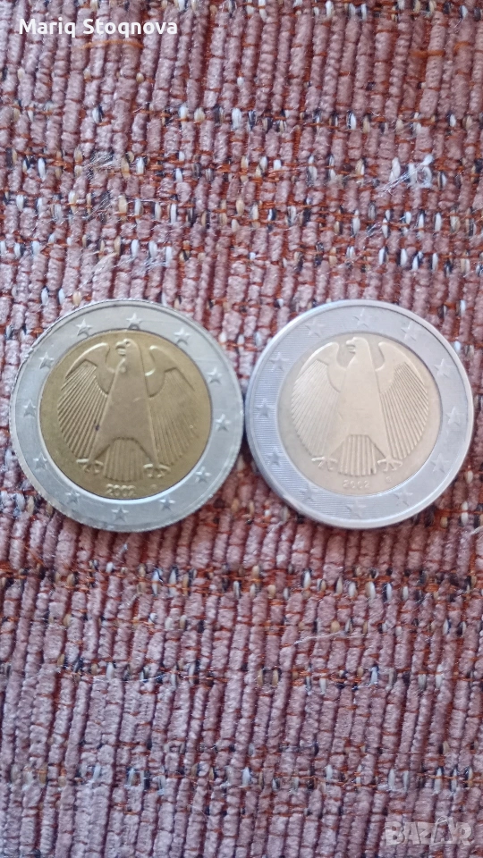 🪙 Предлагам оригинална 2 евро монета от Германия (2002) с рядка и комплексна фабрична грешка (mint error) – силно изместен биметален център (off-center / misaligned core), видим с просто око и от двете страни на монетата.