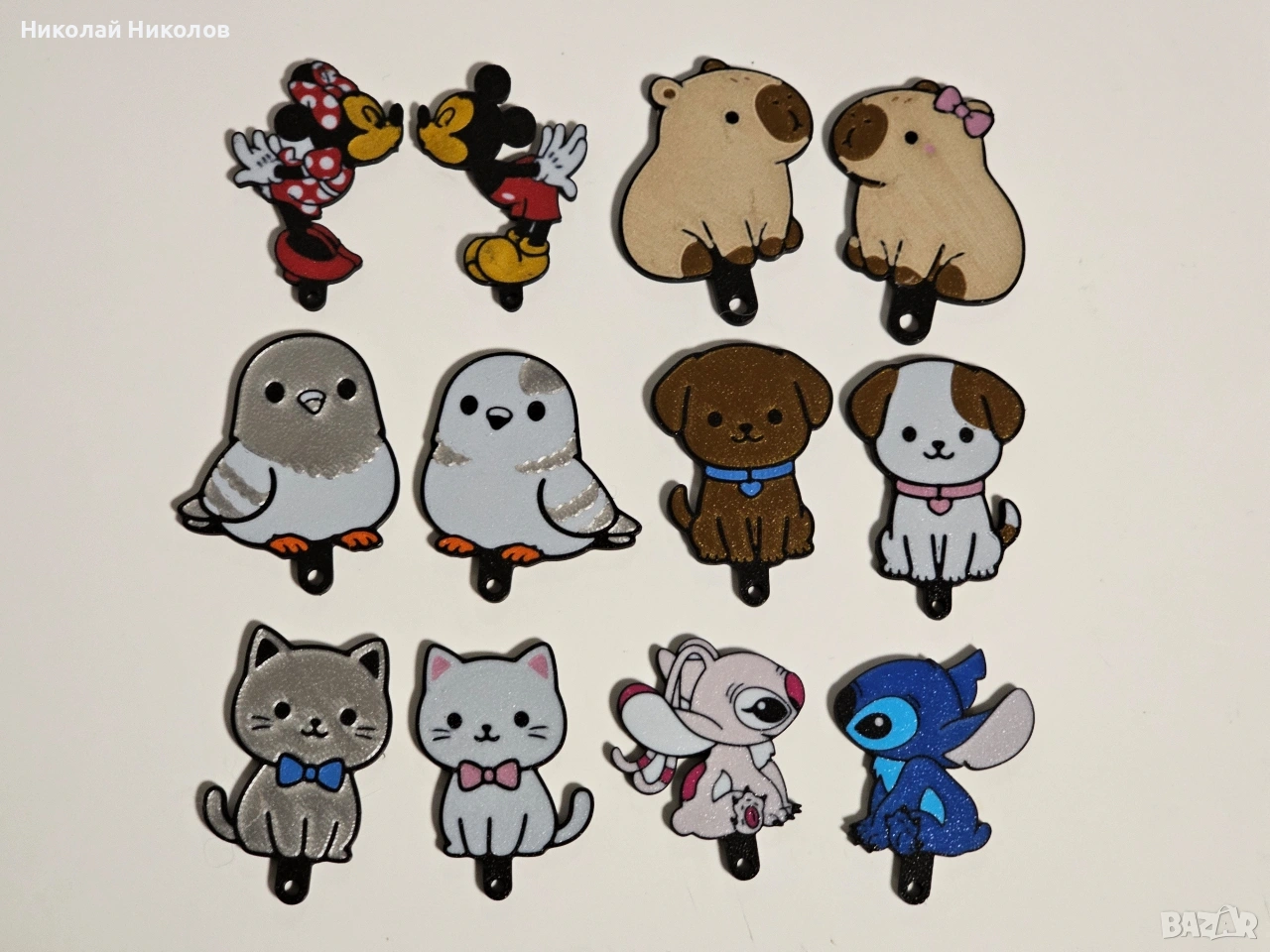 Продавам 3д принтирани ключодържатели Angel и Stitch, Mickey и Minnie mouse, Котенца, Кученца, Капибари и Гълъбчета със поставка за ключодържателите на стена. Перфектен подарък за влюбени. Може и да се закупят и без поставка за стената както и другите модели от снимките на 5 евро комплекта. Лично предаване за Стара Загора или изпращам с куриер.