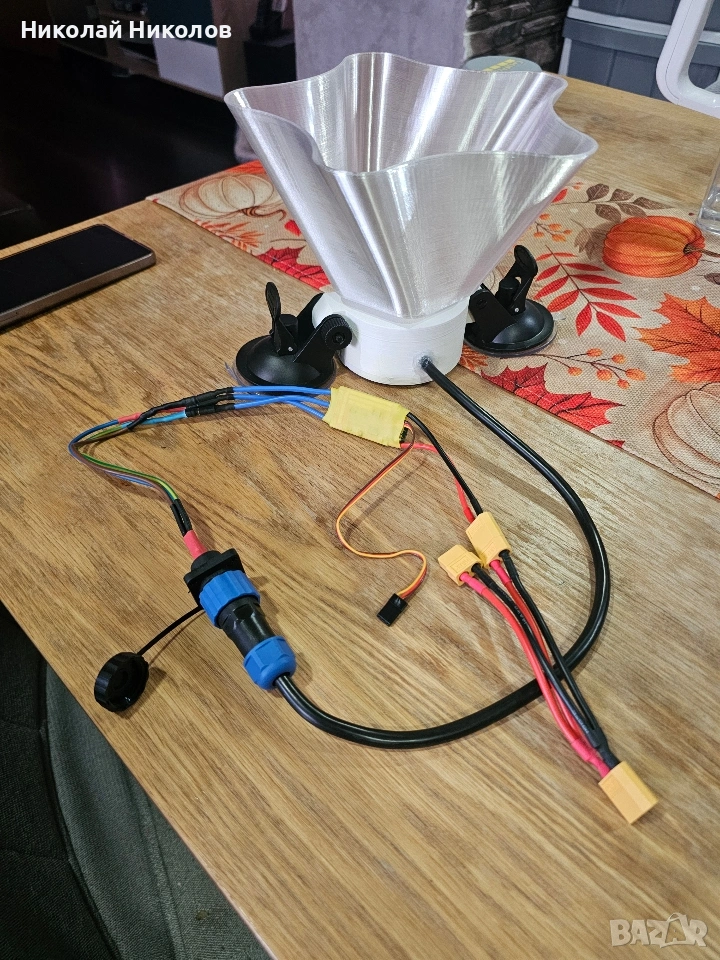 Лесен монтаж. Клип на монтирано устройство: https://youtu.be/zbku_L8FOMA Универсална разпръсквачка за захранка за лодка за риболов. В комплекта включва устройството с моторче и спийд контролер както и водоустойчив конектор за монтаж в корпуса на лодката. Устройството се закрепя за лодката със вендузи. Лично предаване за Стара Загора или изпращам с куриер.