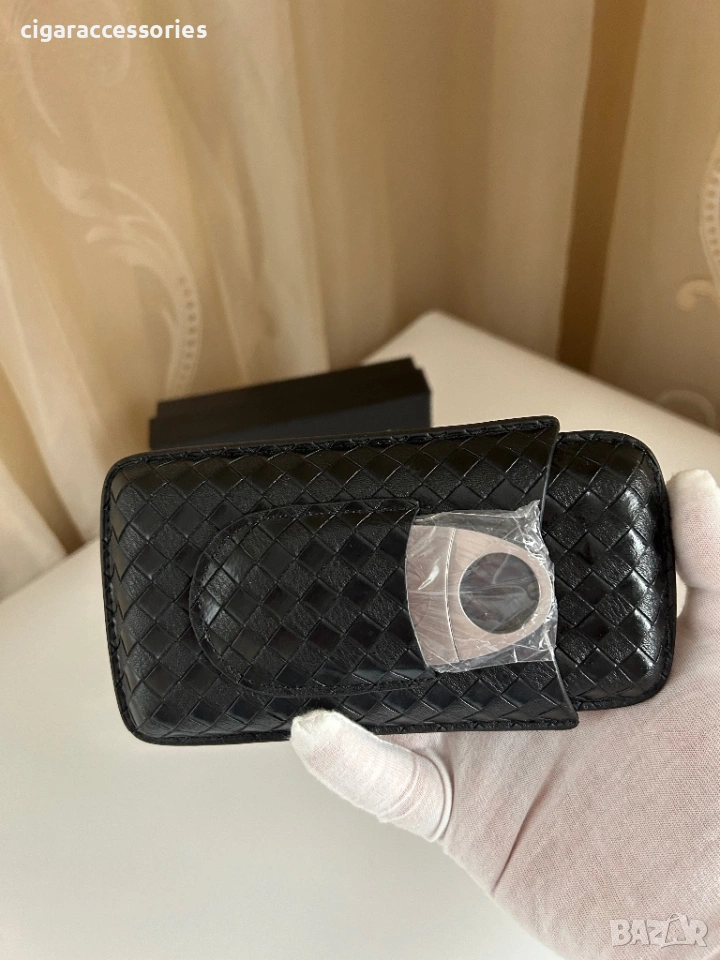 Кожен калъф за пури от престижната марка Cohiba – стилен и практичен аксесоар за всеки любител на пурите. Калъфът е изработен от висококачествена кафява кожа с плетена текстура.