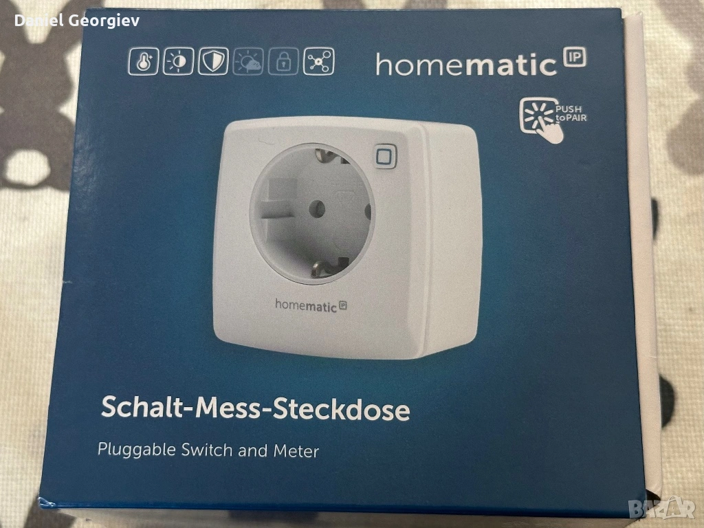 Продавам нов, неупотребяван Смарт контакт с вграден измерител на токова консумация и напрежение в реално време на марката Homematic IP.