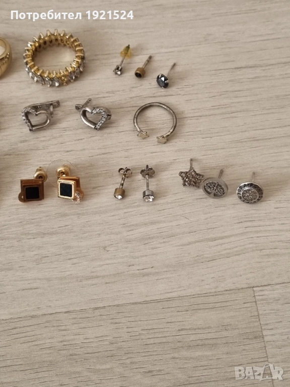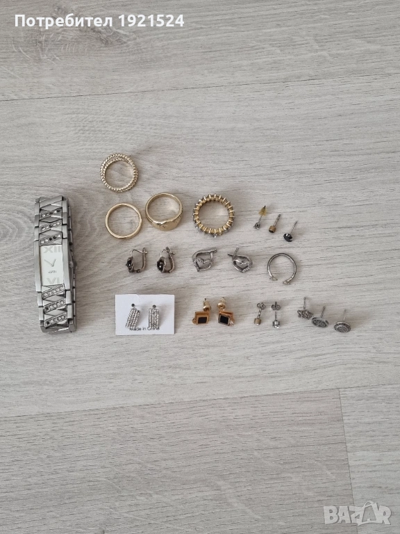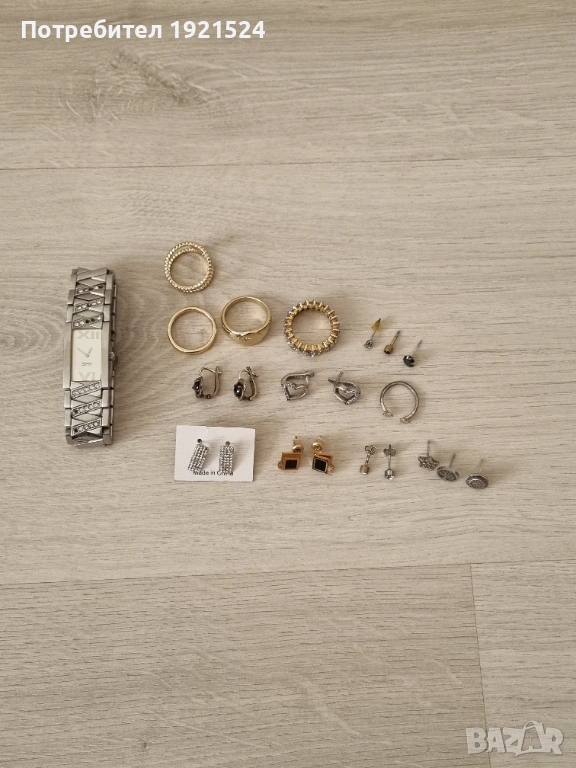 Повечето обеци са сребърни. Часовника е на марката Esprit