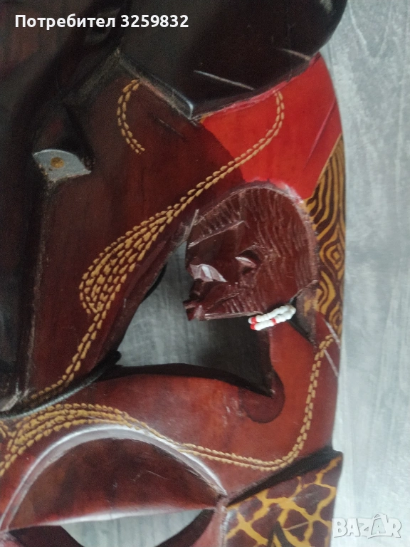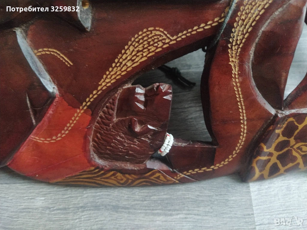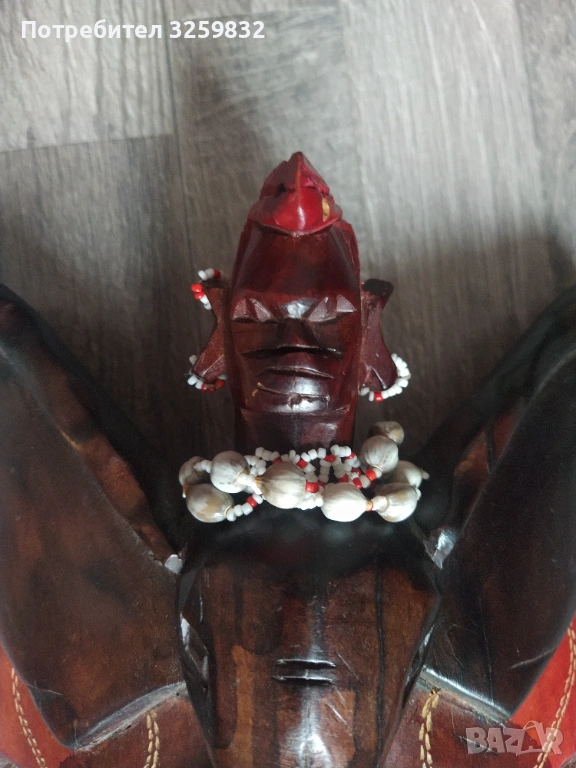 Декоративни елементи: Украсена с автентични африкански мъниста (бели, червени, сини)
