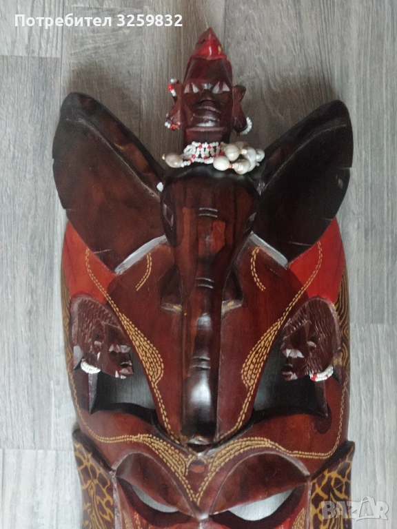 Материал: Масивно резбовано дърво (изглежда ръчно издялана от едно цяло парче)