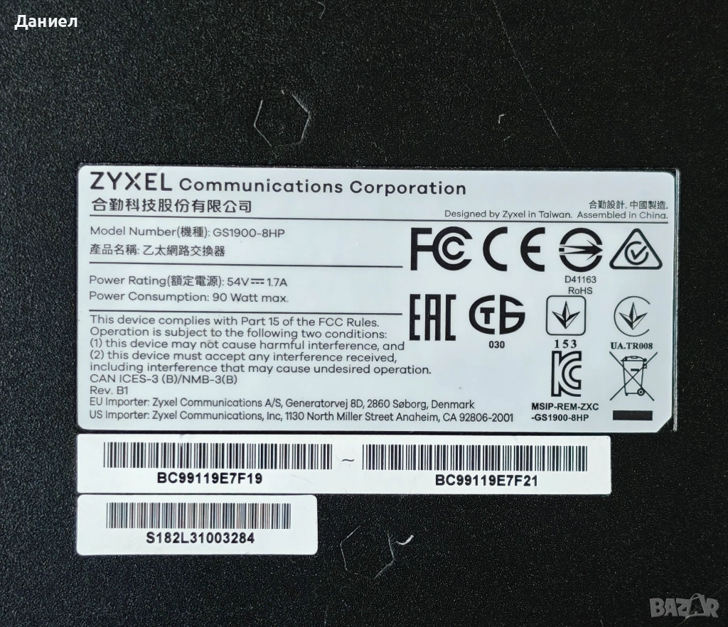 8 портов гигабитов PoE+ управляем суич Zyxel GS1900-8HP → Обява 53399970
