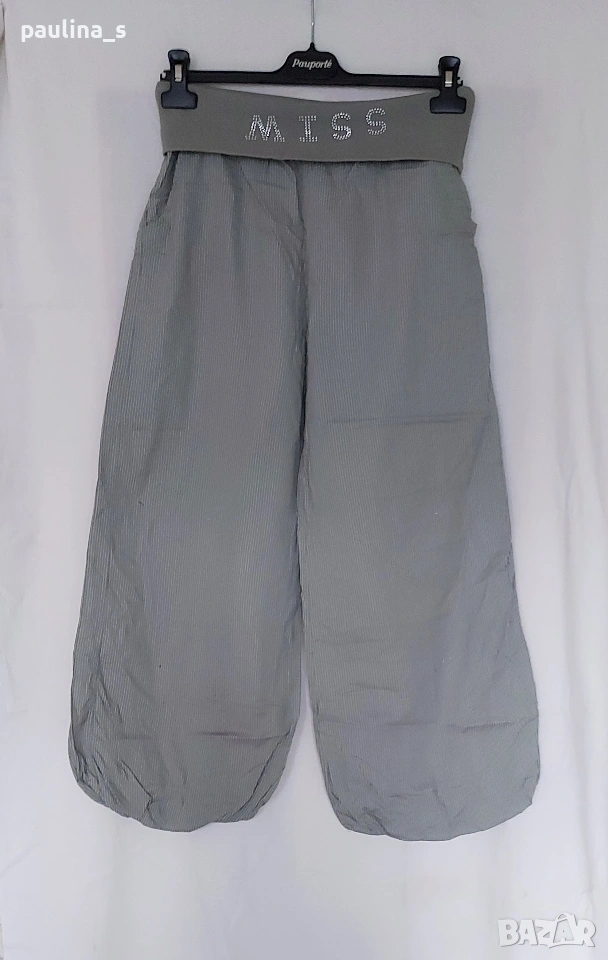 2️⃣L / 2XL - "Zafa". Цената е крайна, без пазарлъци 15 евро! Памучни шалвари с камъни и хастар. Материята е 100% фин индийски памук. Джобовете са косо разположени под платката. Платката е висока, еластична и декорирана с малки камъни. Цветът е Шам фастък / Пистачио на бели райета, хастарът е памучен също. Като нови, без дефекти и етикет, една бройка, става за посочените размери, вижте мерките в обявата! МОЛЯ!
