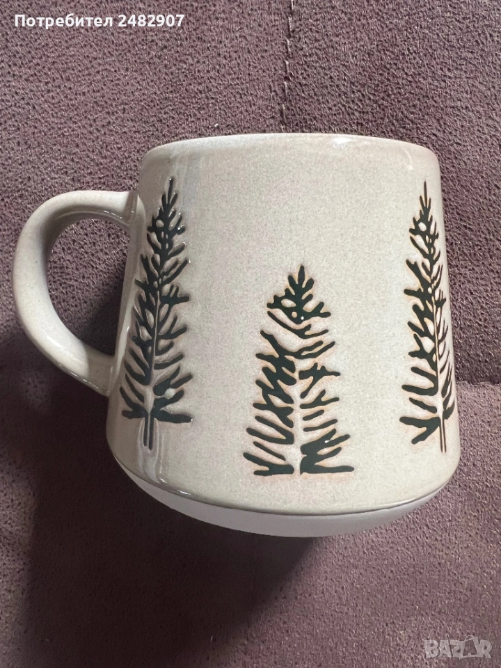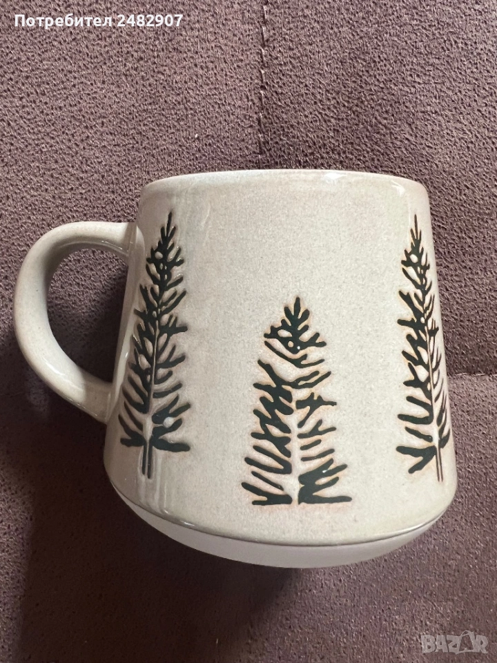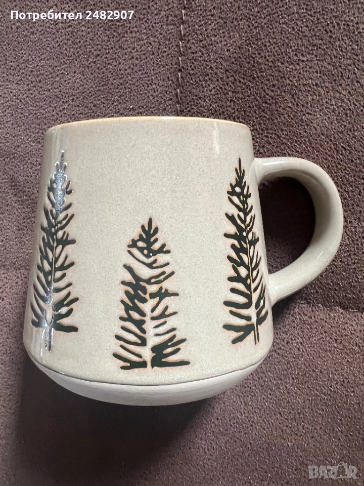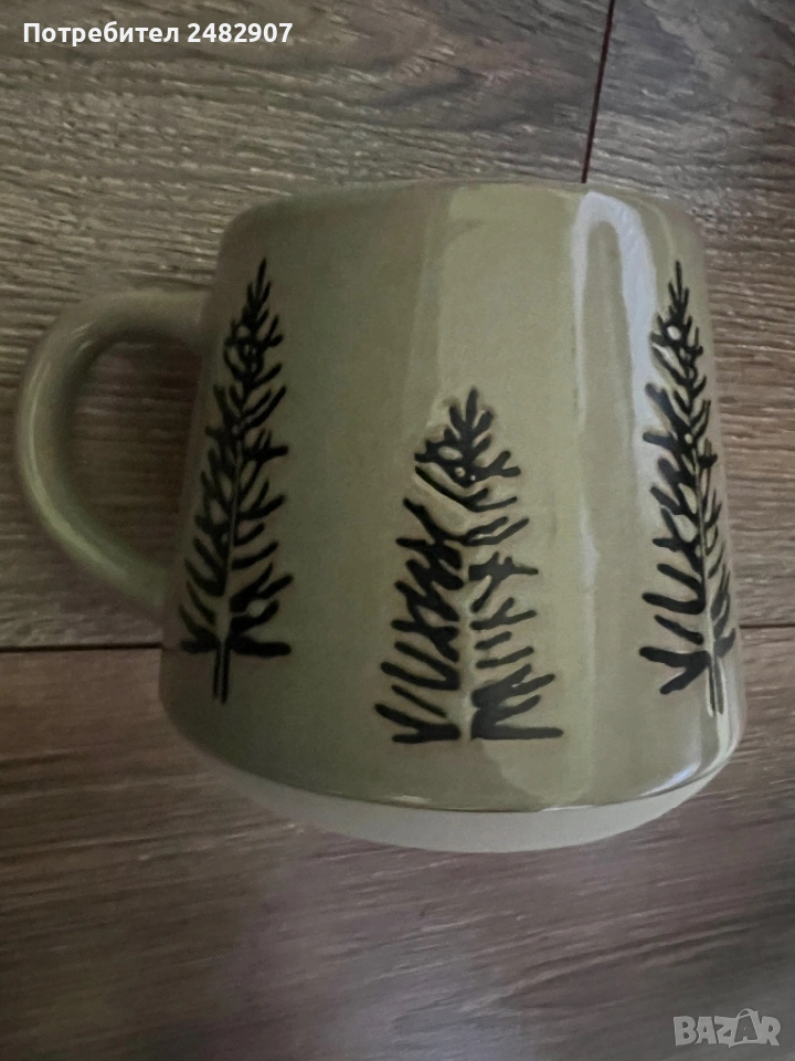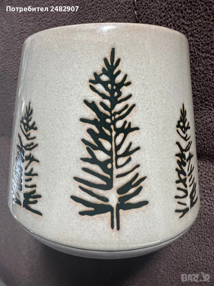 Голяма керамична чаша, вместимост - 500 ml. Диаметър в долната част - 9 см, диаметър в горната част - 8 см, височина - 9 см. Чисто нова, не е използвана, красива, глазирана, ефектна. Може да се използва като кашпа за стайни растения или просто за декорация.