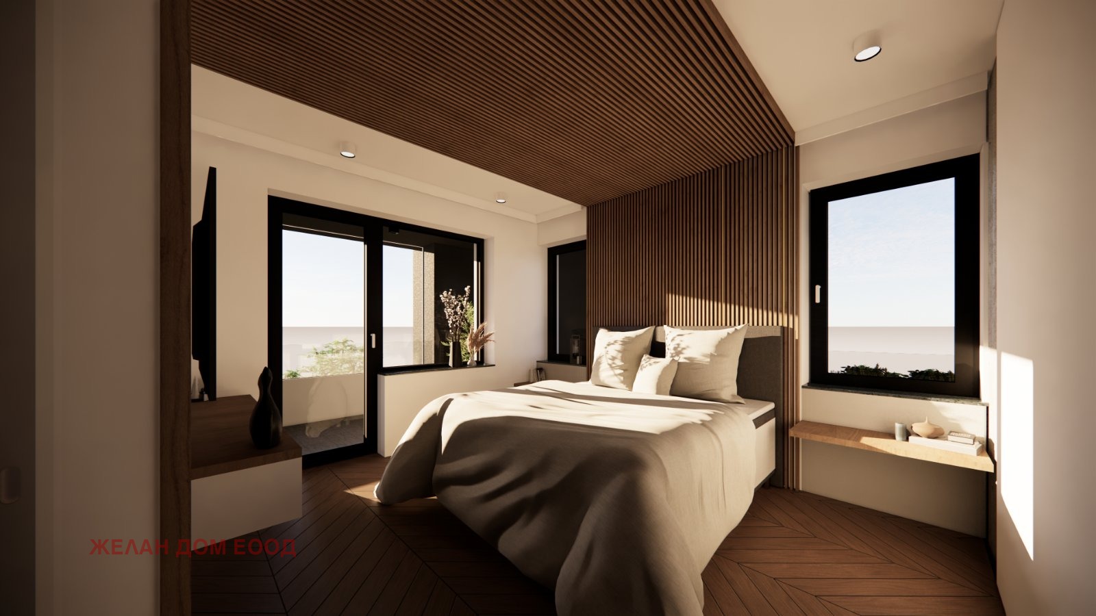 Вторият етаж се състои от: спалня с отделни баня и тоалетна, и с достъп до тераса; две детски стаи, с разположена между тях баня с тоалетна.