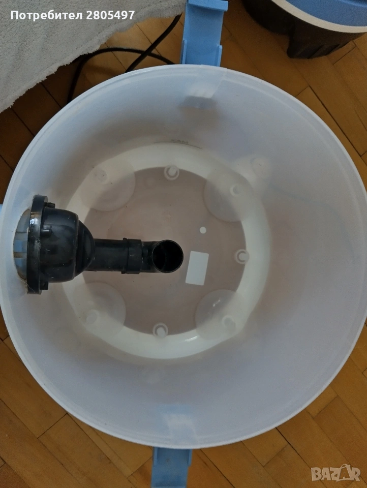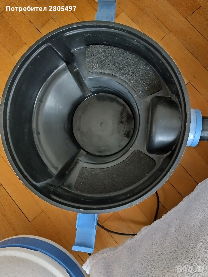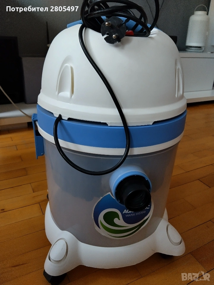Прахосмукачката е мощна, но лека. На дъното се слага вода, която върши работа като филтър, отделно има и други филтри.