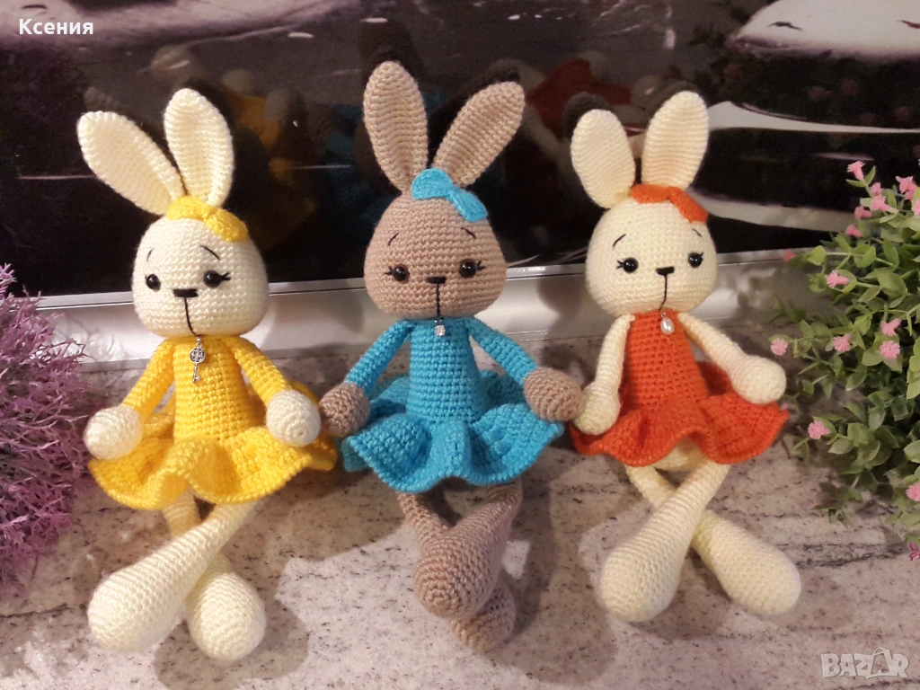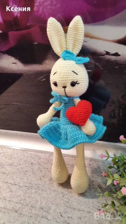 Подаръци за Св. Валентин. Плетена играчка Зайче-балерина, ръчно изработени, прекрасен подарък → Обява 53400471